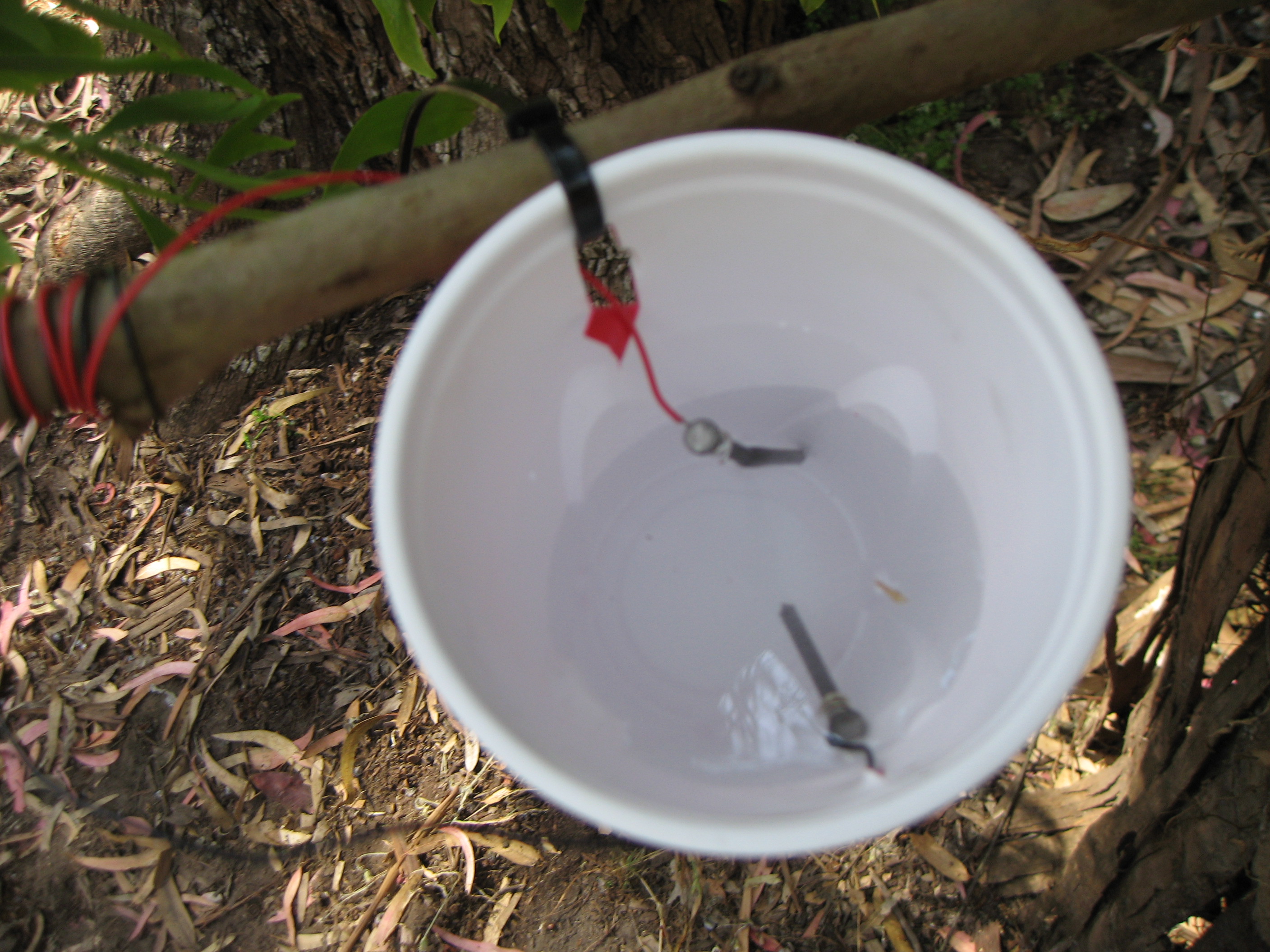 I took a picture to prove that it is actually putting out voltage. The surprising part is that after fifteen minutes we observed little bubbles forming at on the electrodes; our tree is actually releasing oxygen!