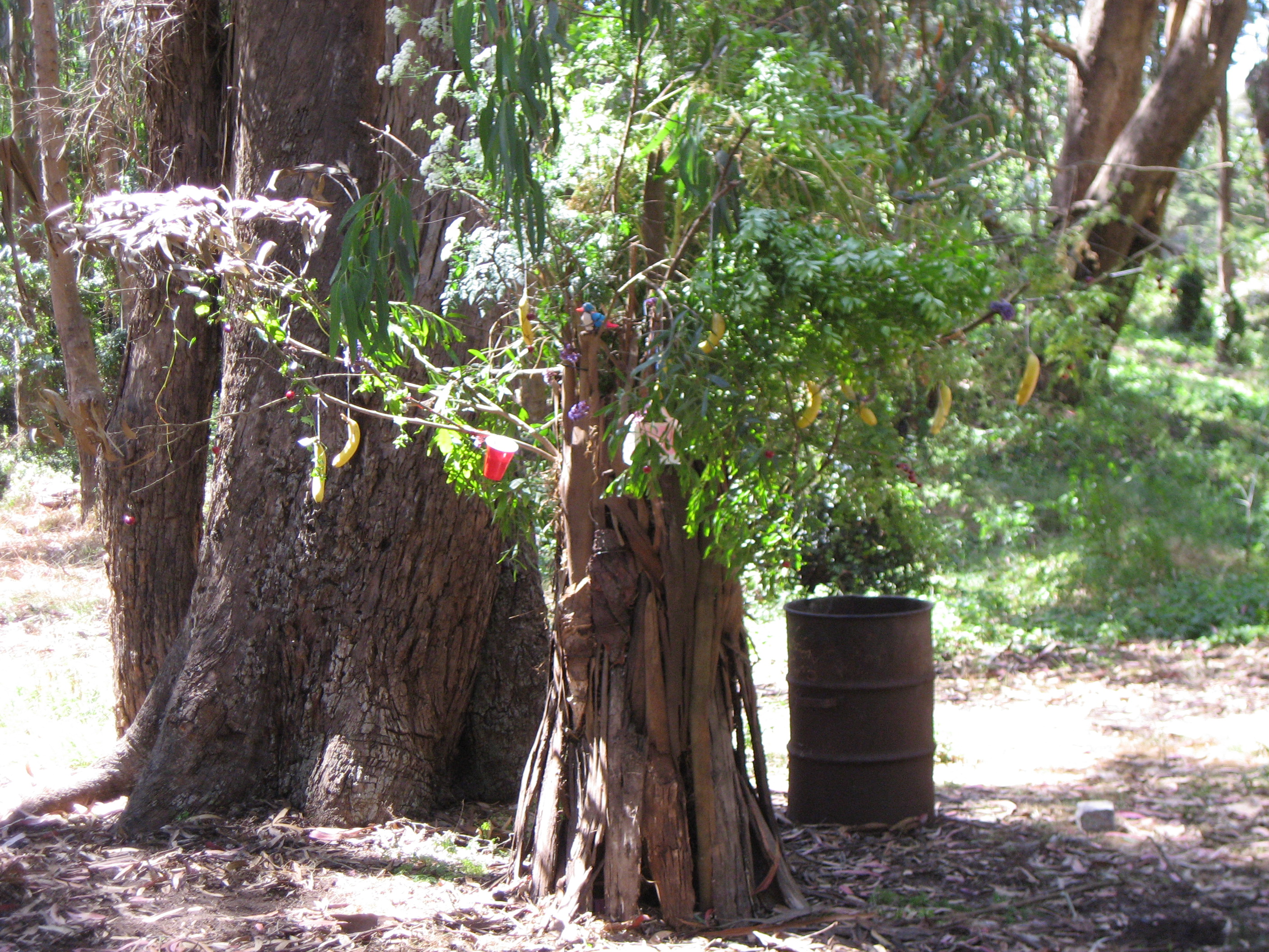 Cameron When Lowteck invited me to this task, my first though was that it would be great to put up our tree next to our desert, and begin a garden, of sorts. That suggestion was met with approval, so I led the group to the wee hidden grove where the desert still stood. The building of the tree was a blast, and despite the lack of any real solid plans, it took shape quickly, and beautifully. I love our trees complete inability to settle on any one type of tree... (Cherries, bananas, flower, 37 differnt types of leaves)