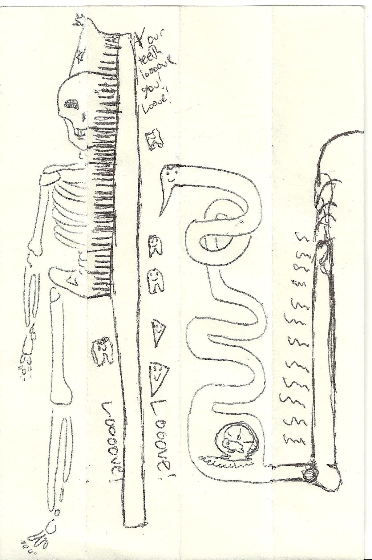 However, two small girls appeared interested in our match, and eyed both the pieces and the vast collection of corpses around us. They refrained from speech but their faces conveyed most confused sentiments. A game? Multipart drawings? WHAT? WHAT? WHAT? This sentiment of confusion at the chaos on the board and on the paper perplexed them and permitted us snickering.