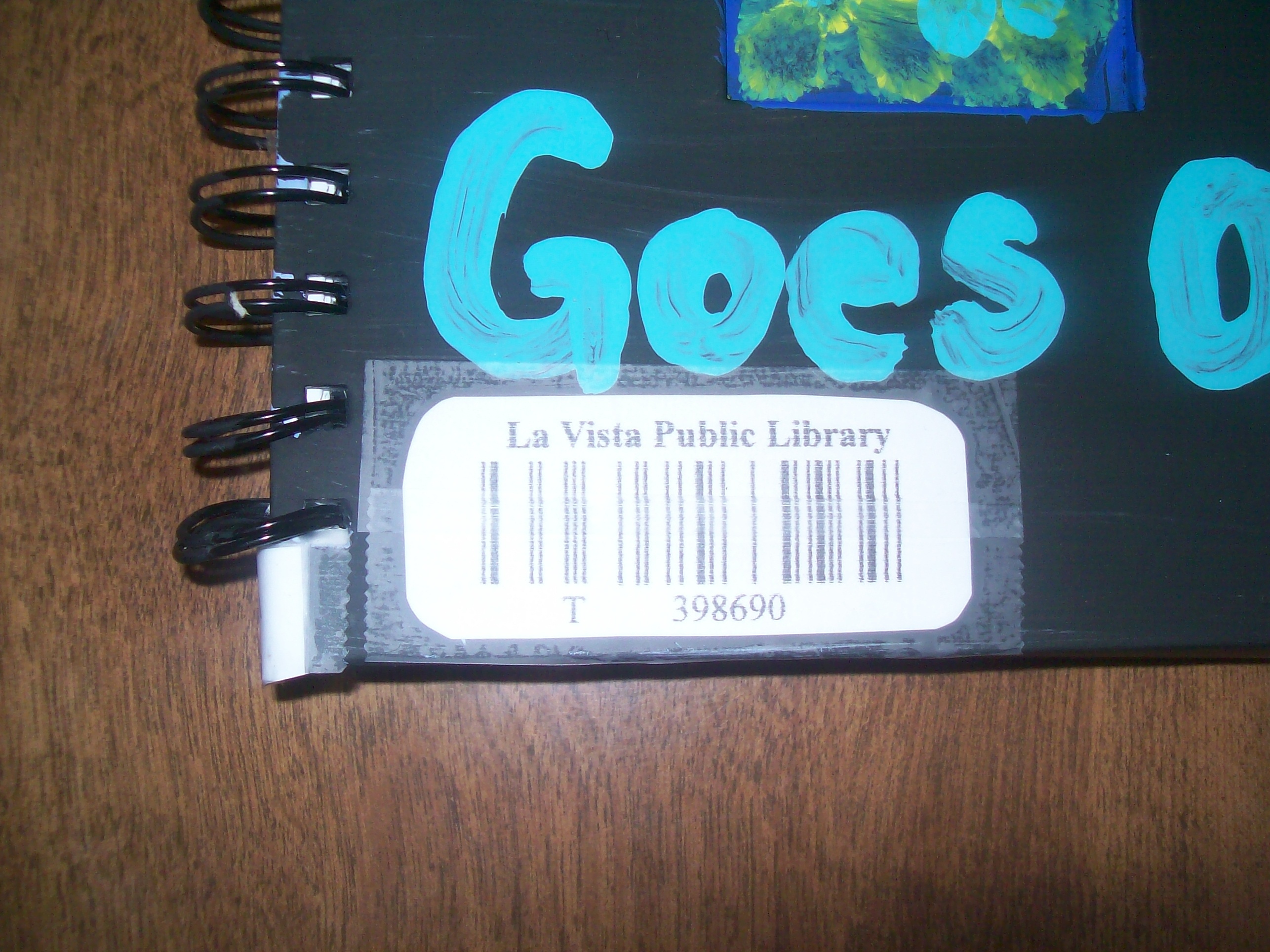 I also had a few books rented from the library so I copied their bar code system, printed it out and just taped it on. It actually looks exactly like all the other books in that respect except on the spine I put the call number on the bottom because that is where it was on my non-fiction books, but fiction was in the middle on the spine. Oh well.