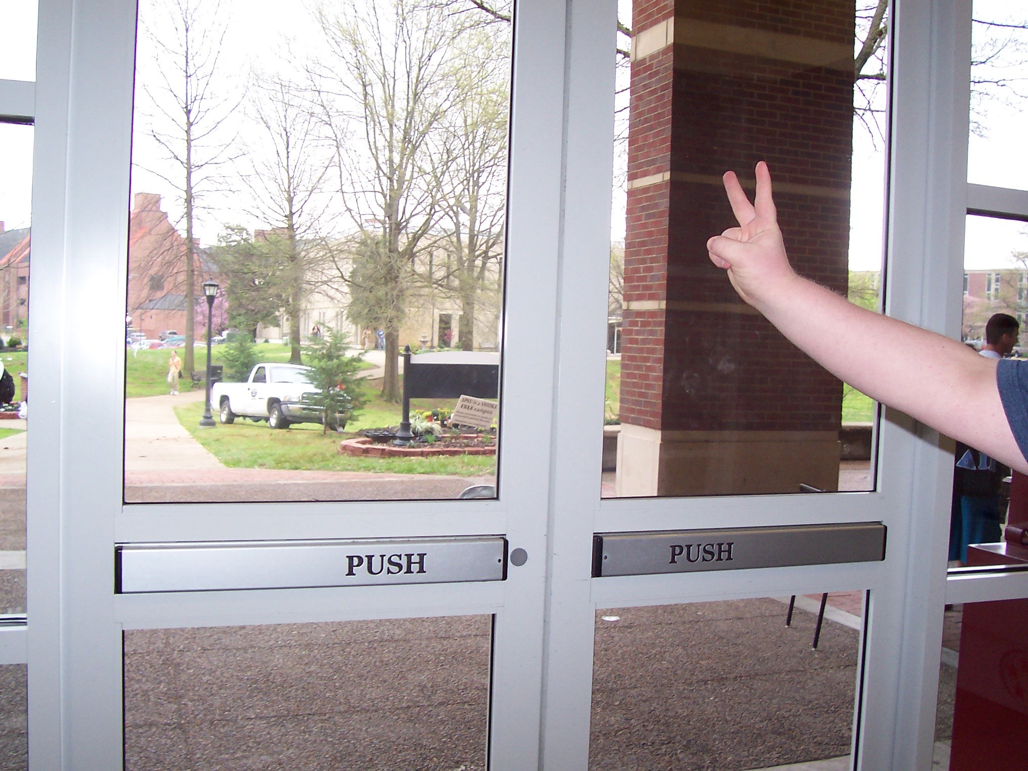 This is where I started. Usually, I'd go left from this point. So, I went right instead. The victory sign is from my friend, who being more responsible, actually went to class after I took this photo.