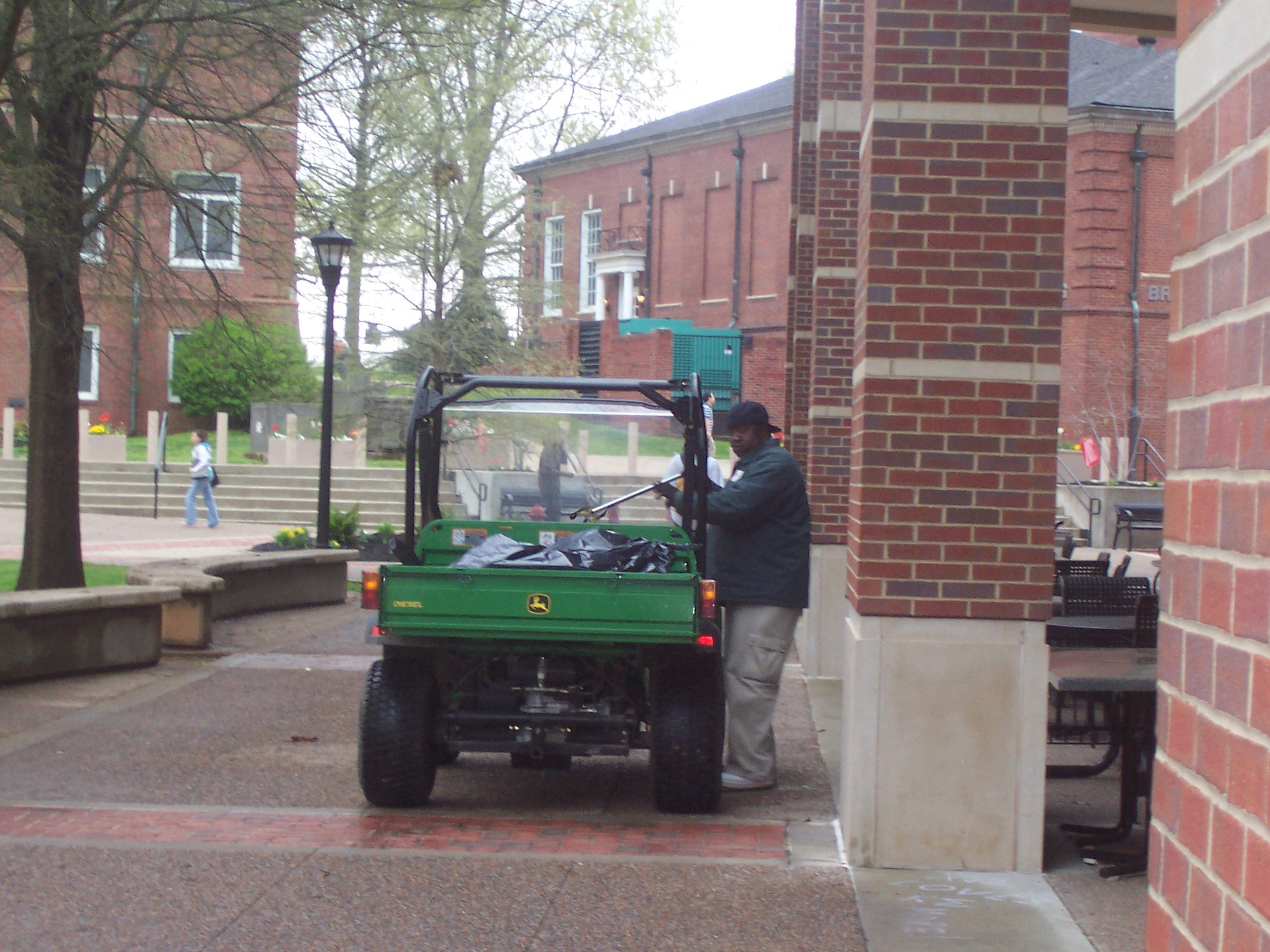 on my first wrong turn, I saw this neat gator. I think the nice man is puzzled as to why I'm taking a picture of him and his campus maintenence vehicle.