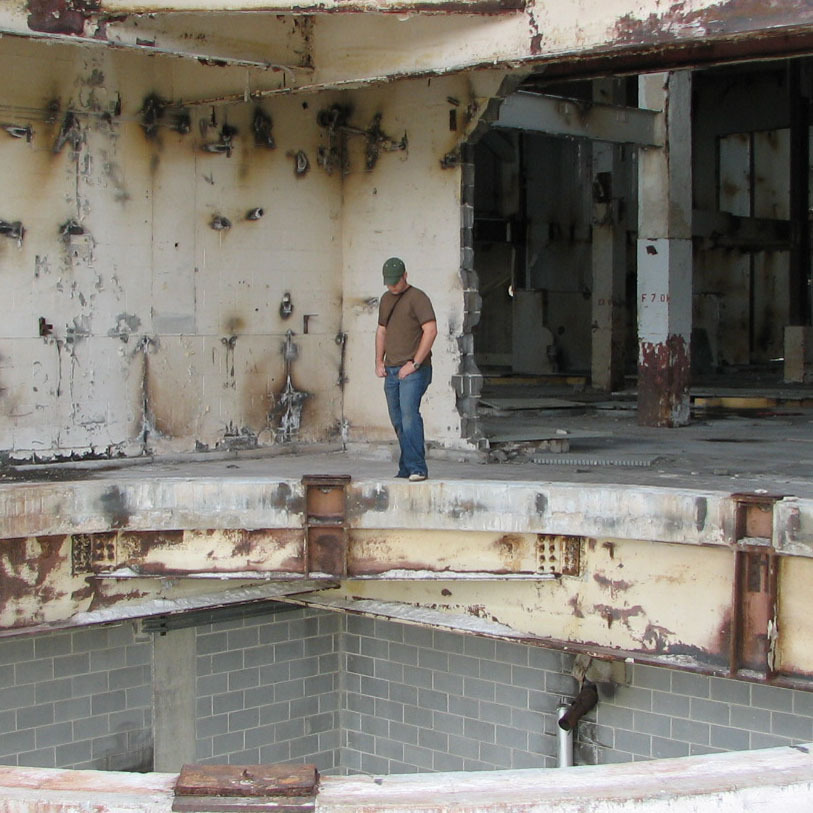 Inspecting a 200 ft. drop in an abandoned soap factory.
