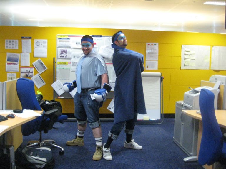 but you can't really see The Blue MadMan's MEGA POWER BOXERS on the last one. (they've got little dogs on them...)
