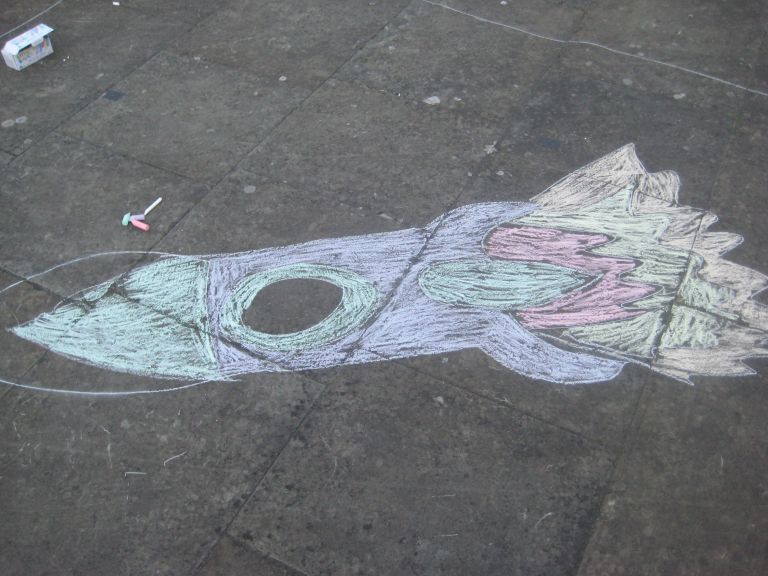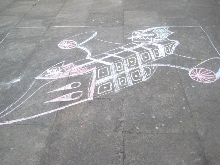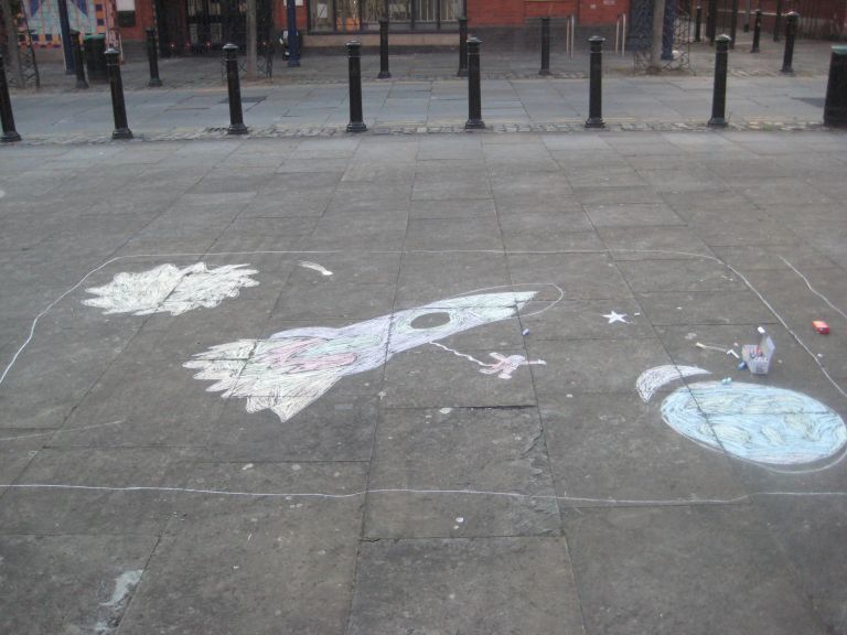 July 3rd, 2009 11:09 AM / Location: 53.484194,-2.235200Much like the high scorers our thoughts turned to happy fun chalk times of our youth, and the sheer unalloyed innocent joy it can bring.
