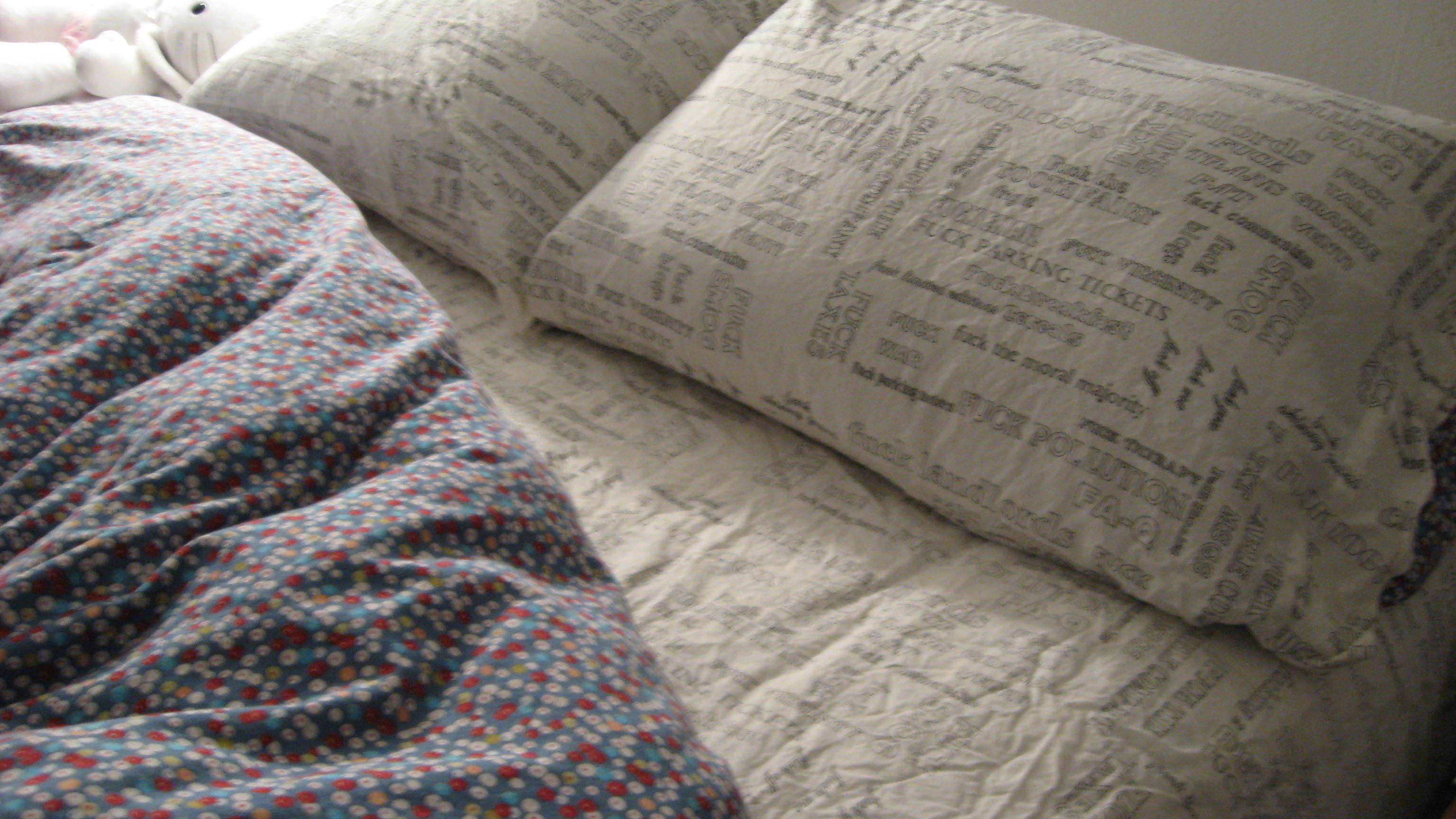 Hehe. The 2nd best part about those sheets (because the best part is they say "fuck") is that I got them for $10.00!
