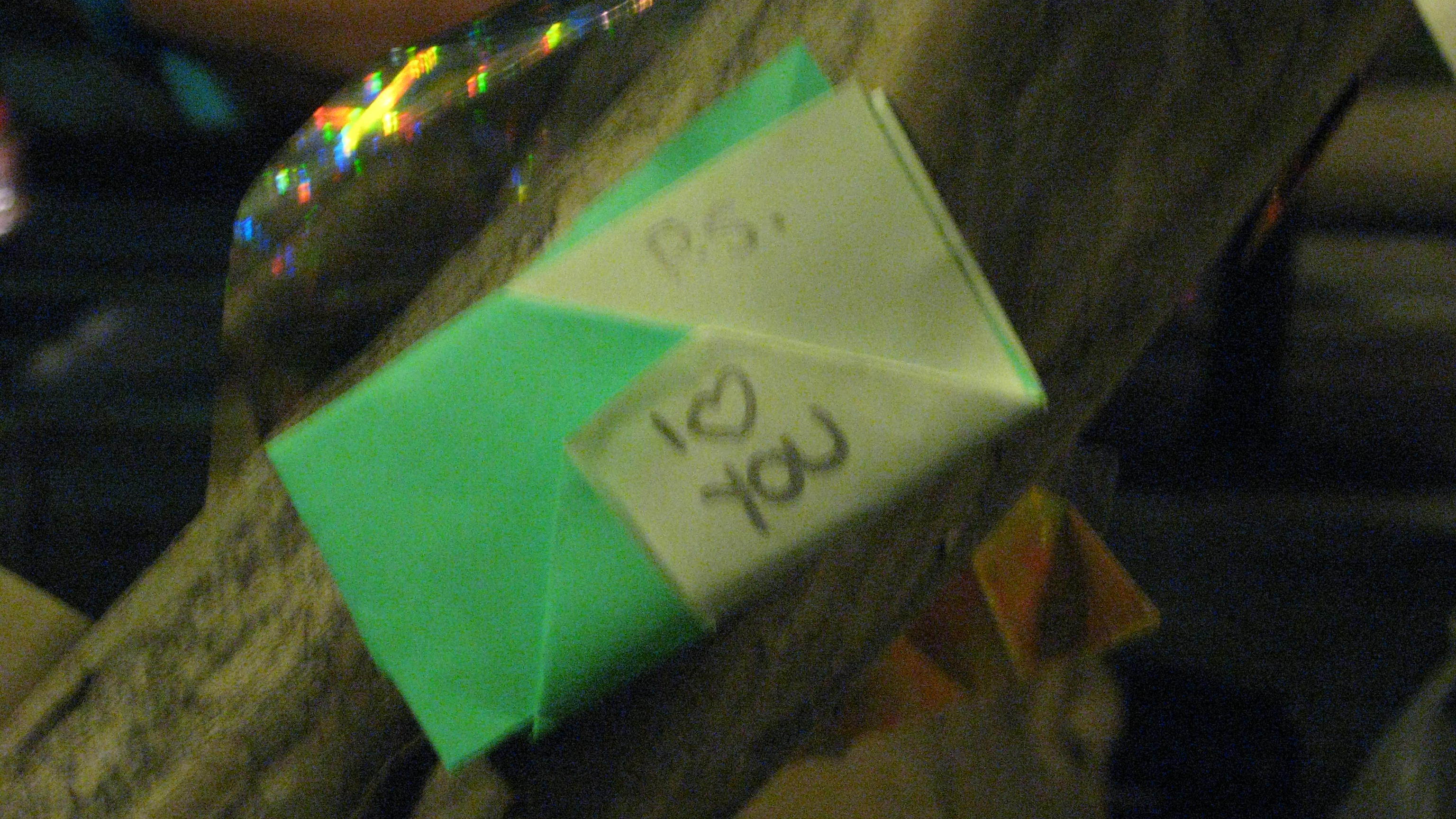 there were tasks to do. At the third checkpoint, we each had to make a piece of origami. I made a teenage love note.