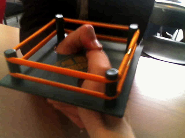 I went to a client luncheon on Friday, July 21, 2006 and they had these little Pro Wrestling Rings (see pic), so cute! There was an event as part of the luncheon where they had a competition, but I knew everyone in it. But, I grabbed one of the extra ones and asked a few people at the table next to mine... they all declined. Most everyone at my table stood up to go back to the office, and someone from the client company I hadn't met sat down. I introduced myself, he introduced himself back. I immediately asked him if he would thumb wrestle me, showing him the little thumb wrestling ring, and he agreed. Yay!