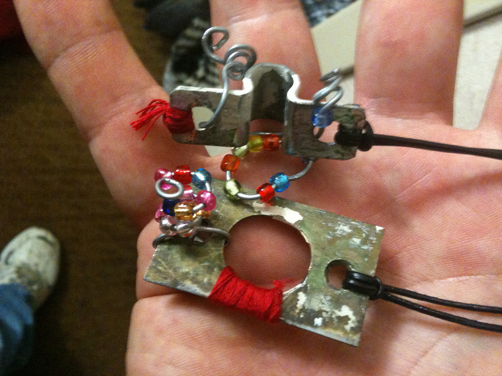 These medals are actually made out of parts taken from the door I removed back when I did the Door Installation task waaay back in the mists of Glasnost. I thought the couple that went for all the Secrets should be rewarded, so I crafted these (inspired in part by the lovely jewelry items Zerogee made).