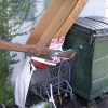 I set out on my mission and immediatly found the hooka hose. I walked further and found the cart already jammed into the side of the dumpster. I decided that was a goods base for the sculpture. I then found across the street so I tossed it into the c...