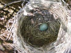 After an hour or so I found my first egged nest. I wouldn't have seen it except that the mother bird got nervous and flew off as I passed. A hint for birdnesters. If you're walking through the woods, and a bird takes off suddenly directly away from you, they probably left a nest. As I said, the season had just started, as there were only 3 eggs in the nest. A bird keeps laying until there are 4 or 5 in the nest, so 3 is a good sign that they will be fresh for blowing and not full of bird fetus.