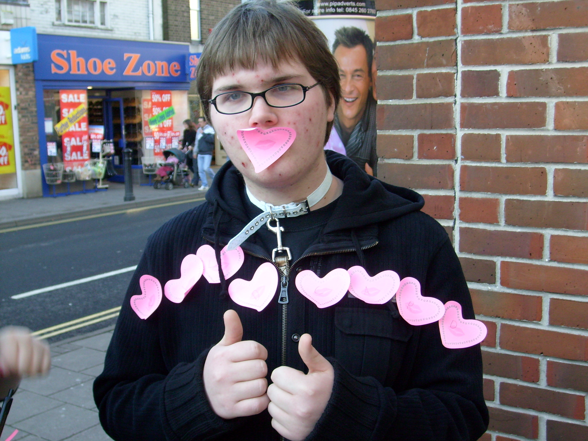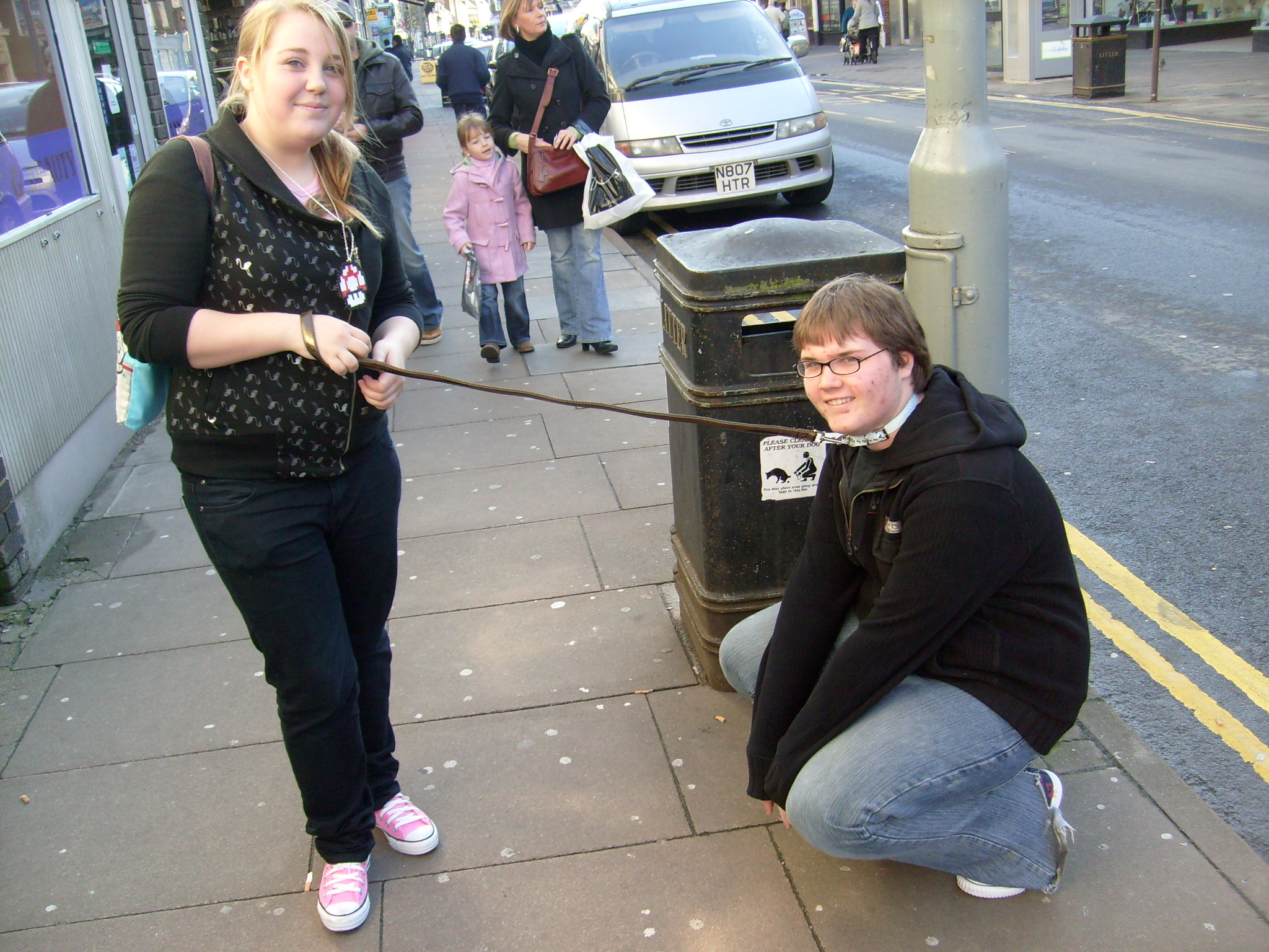 Well, from the photo above you can probably guess why we were called team leash, well I'll give you the full story. We were desperately trying to find some people to for a portrait (as we didn't want to take the easy way out with just one of one of us), so we went into the 'Scope' charity store in which we found a dog lead, and Askew suggested one of us pretending to be a dog ehem 'doing their business' at a 'Clear up after your dog sign. So Neil suggested we get the collar as well and then volunteered to be the dog. After having completed the rest of the challenge, Neil was STILL wearing the collar and leash. And that's when everyone else found out about it.