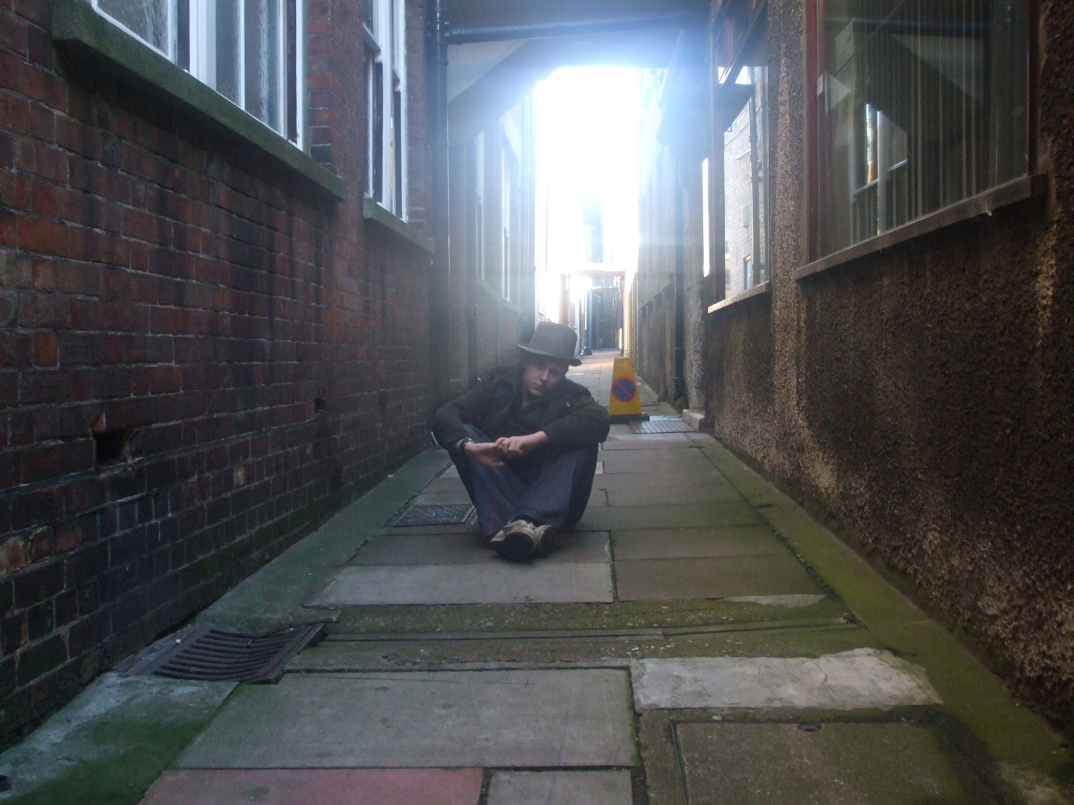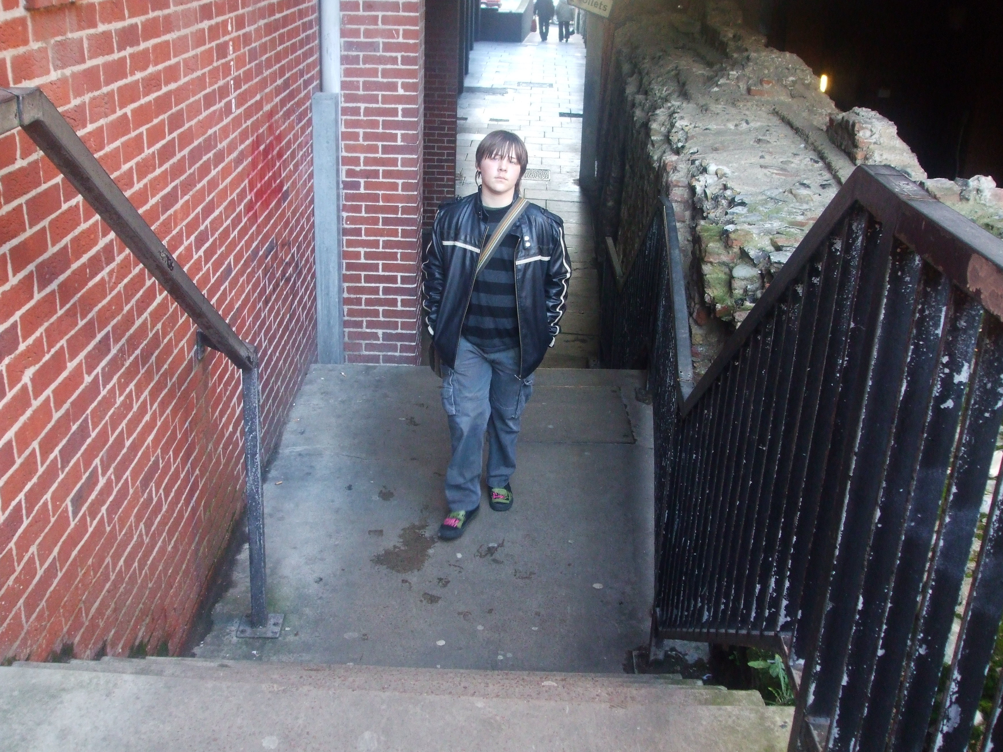 Me and George set off, and driven by food, made our way immediately through market gates (snapping photos as we went) to Woolworths, where we bought Appletise! hence our team name. We then went hunting for areas we knew the others wouldn't visit, an area behind market gates, with the old town wall section, our stairs and a portrait or two, and Victoria Arcade, with our other portrait, and a wild card or so. We spent a while following Adam and Ben with them unawares, culminating in our 5th wildcard, Adam. We're also quite happy with our Text 2, hooray for cunning! Our favourite photo is the cannon, which is awesome. We got back to the lighthouse early, and had a sausage roll (and a Belgian bun in some George related instances) and browsed our photos whilst waiting for the others. Then the leash happened, I'll leave it up to Team Leash to tell you all about that...