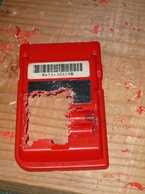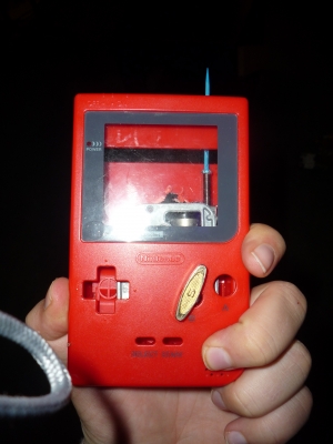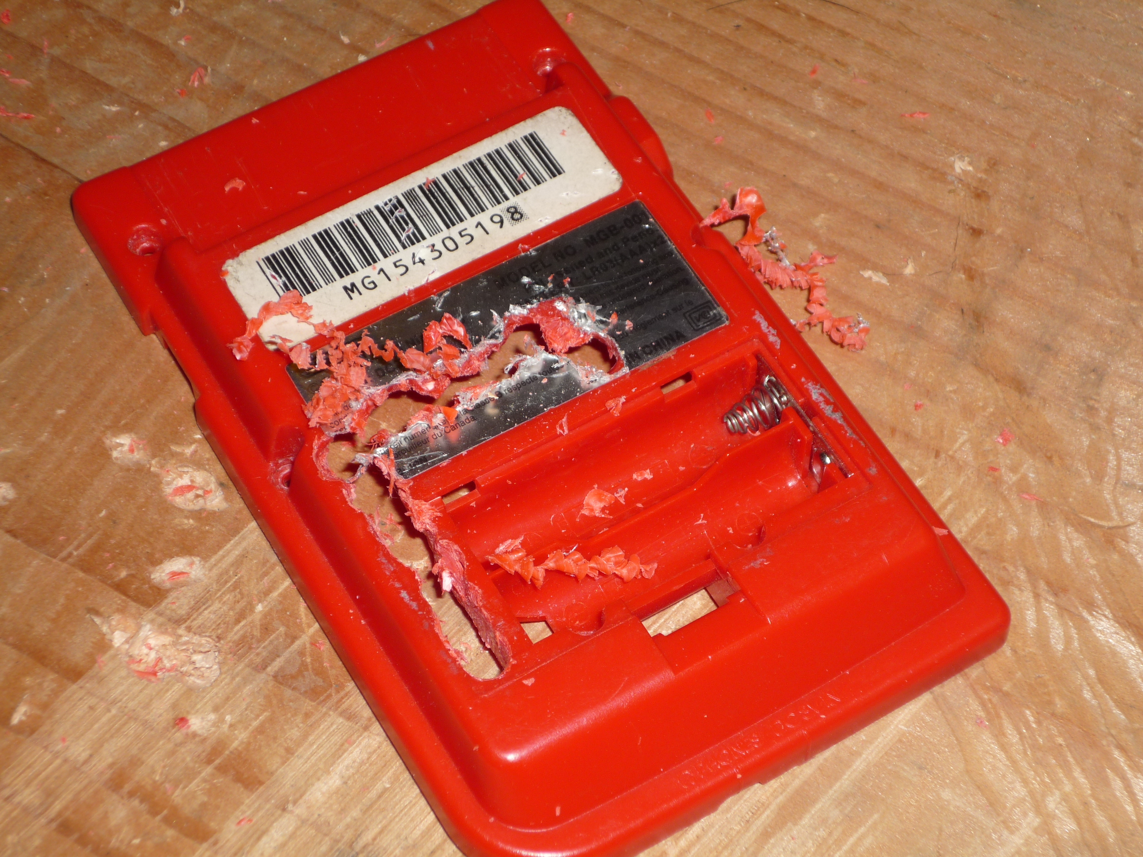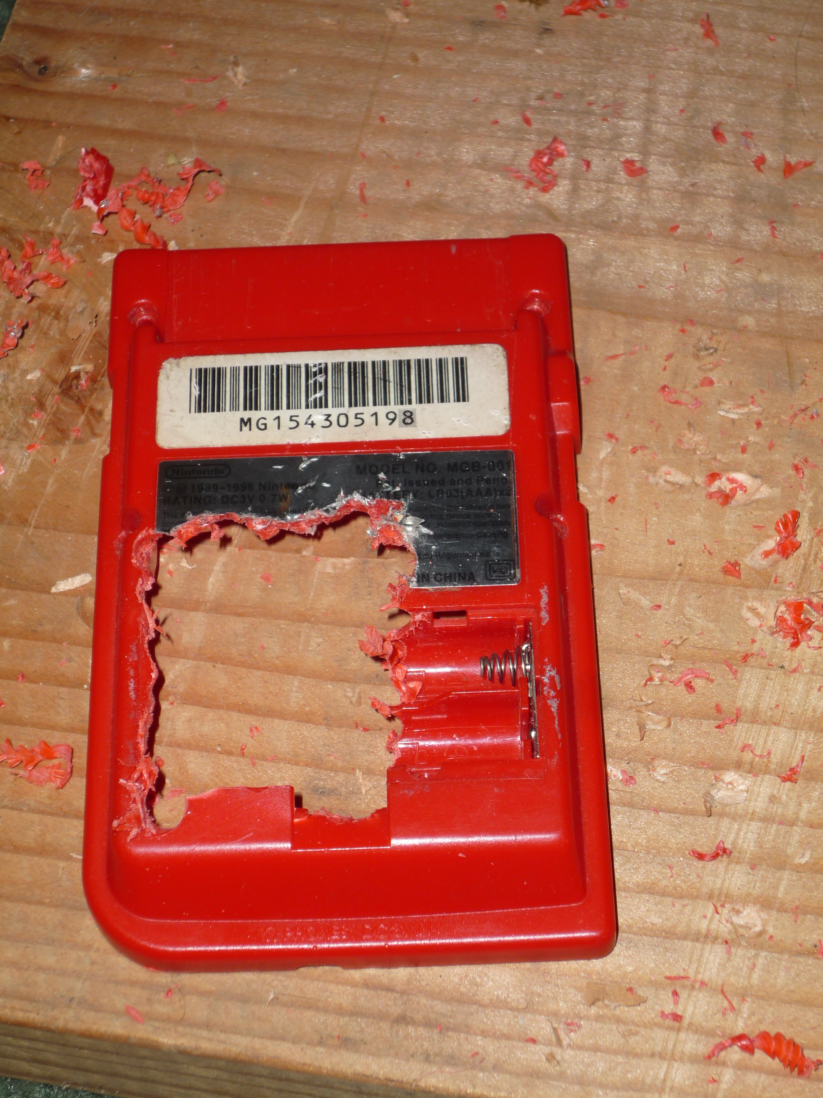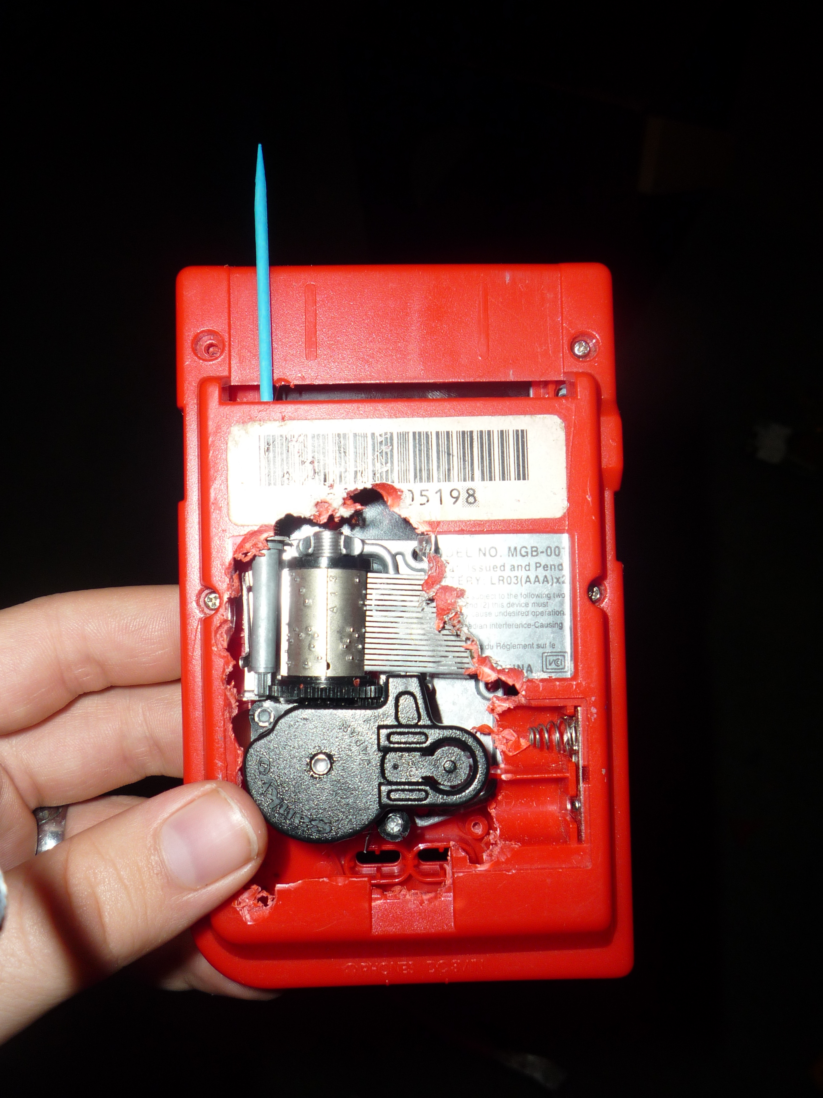 First off, I took the Nintendo apart. (Which was incredibly hard! It had seven three-pronged screws!) Half an hour later, this is what it looked like.