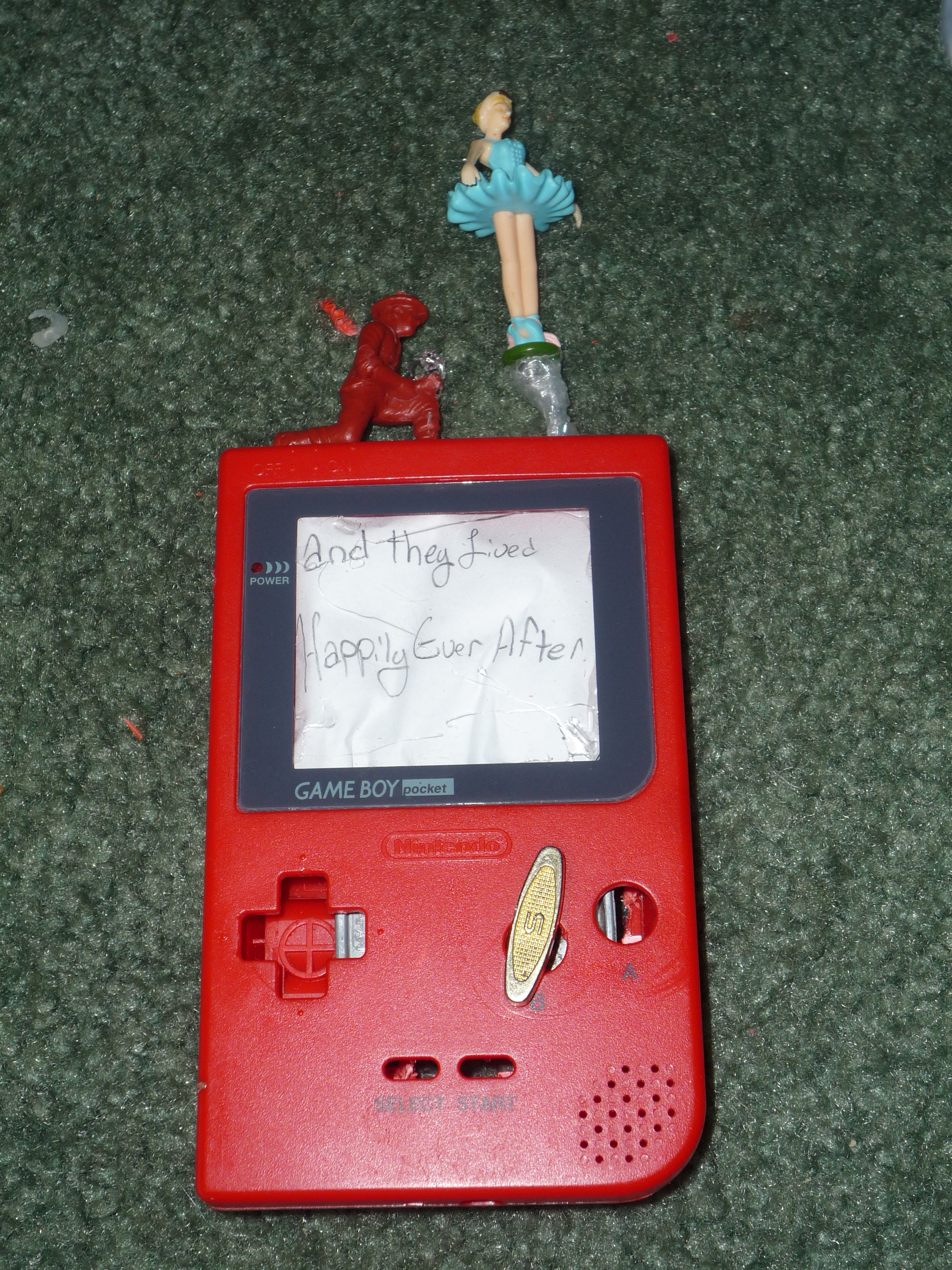 The caption reads: 'And They Lived Happily Ever After'. (Note on the paper: I stripped the three-pronged screws getting them back in, so I could barely open it to place the paper.)