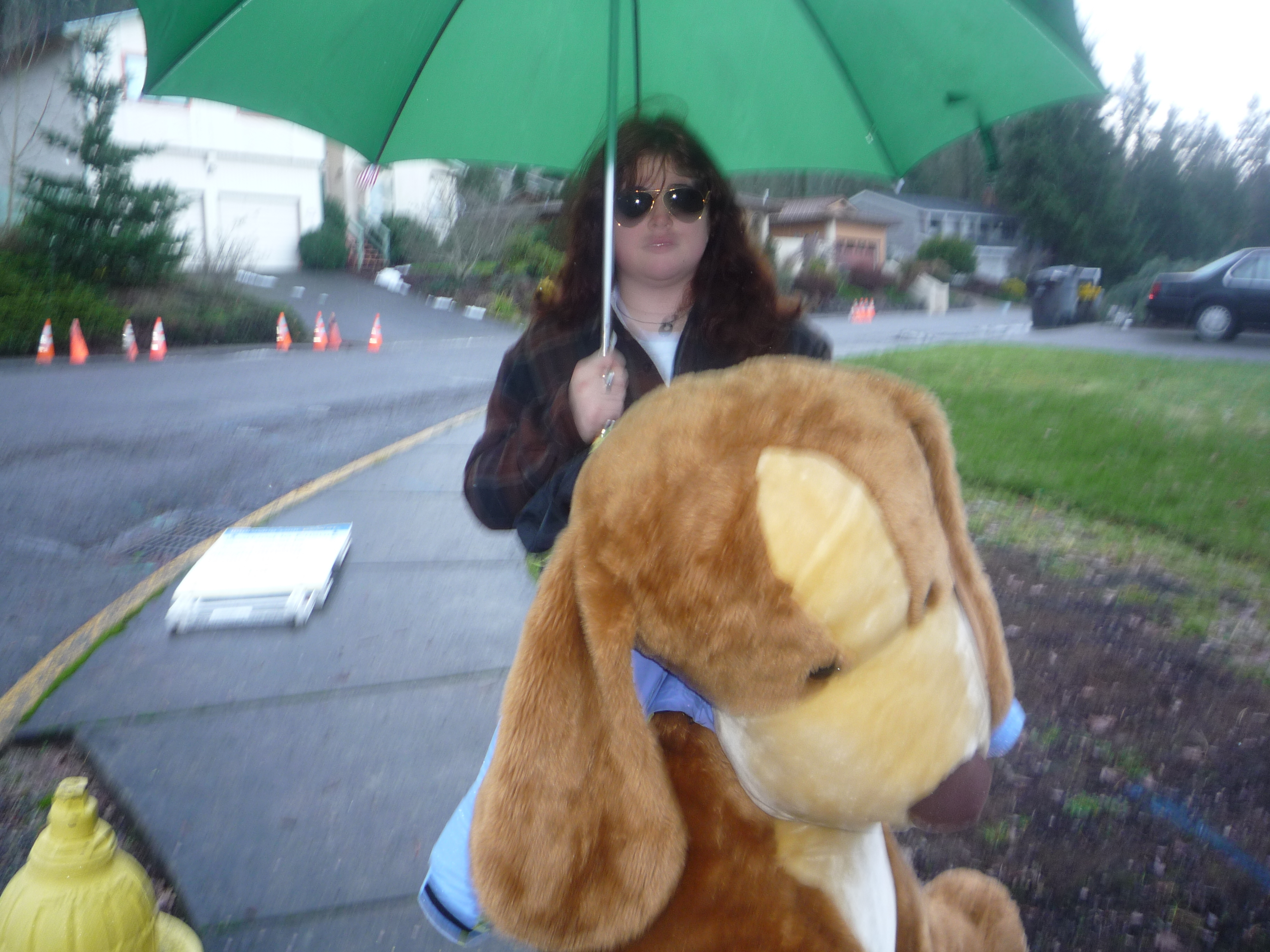 It was raining pretty hard; The Brave Little Toaster usually held the umbrella, but I wanted to show you how big it was. (Pretty big.)
