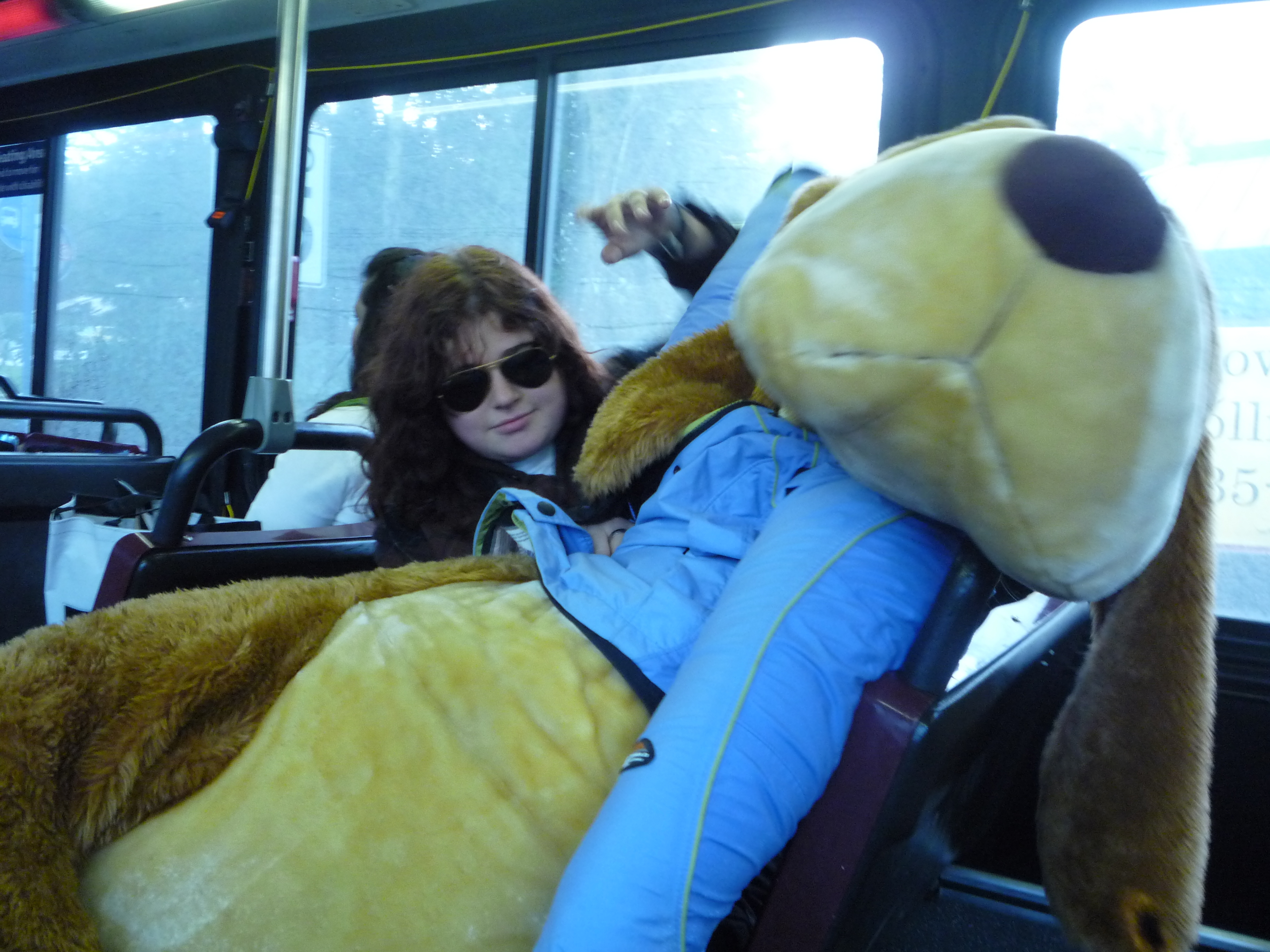 So, once we got down to the bus stop, we stood in this for about fifteen minutes, getting stared at. Not that we minded; TBLT and I sang Disney songs until the bus showed up.