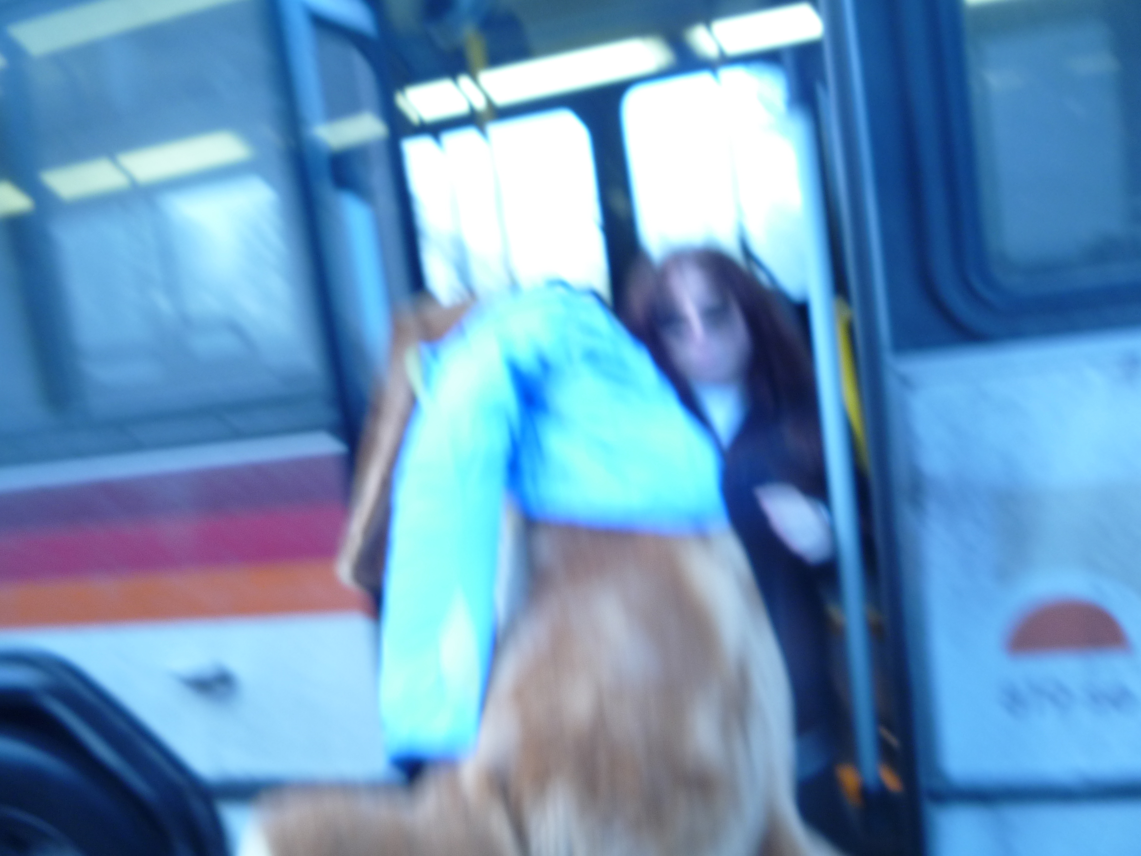Wasn't that eventful, but I did run into an old friend of mine and a very grouchy old lady, who thought that she should have the seat Mr. Woofums was sitting in, despite the fact that we were some of the only people on the bus and every other seat in the priority seating was open. We both moved over one, and she sat right next to me, mumbling about 'kids these days' and 'respect' and 'can't even tell she's a girl', which I got a kick out of.