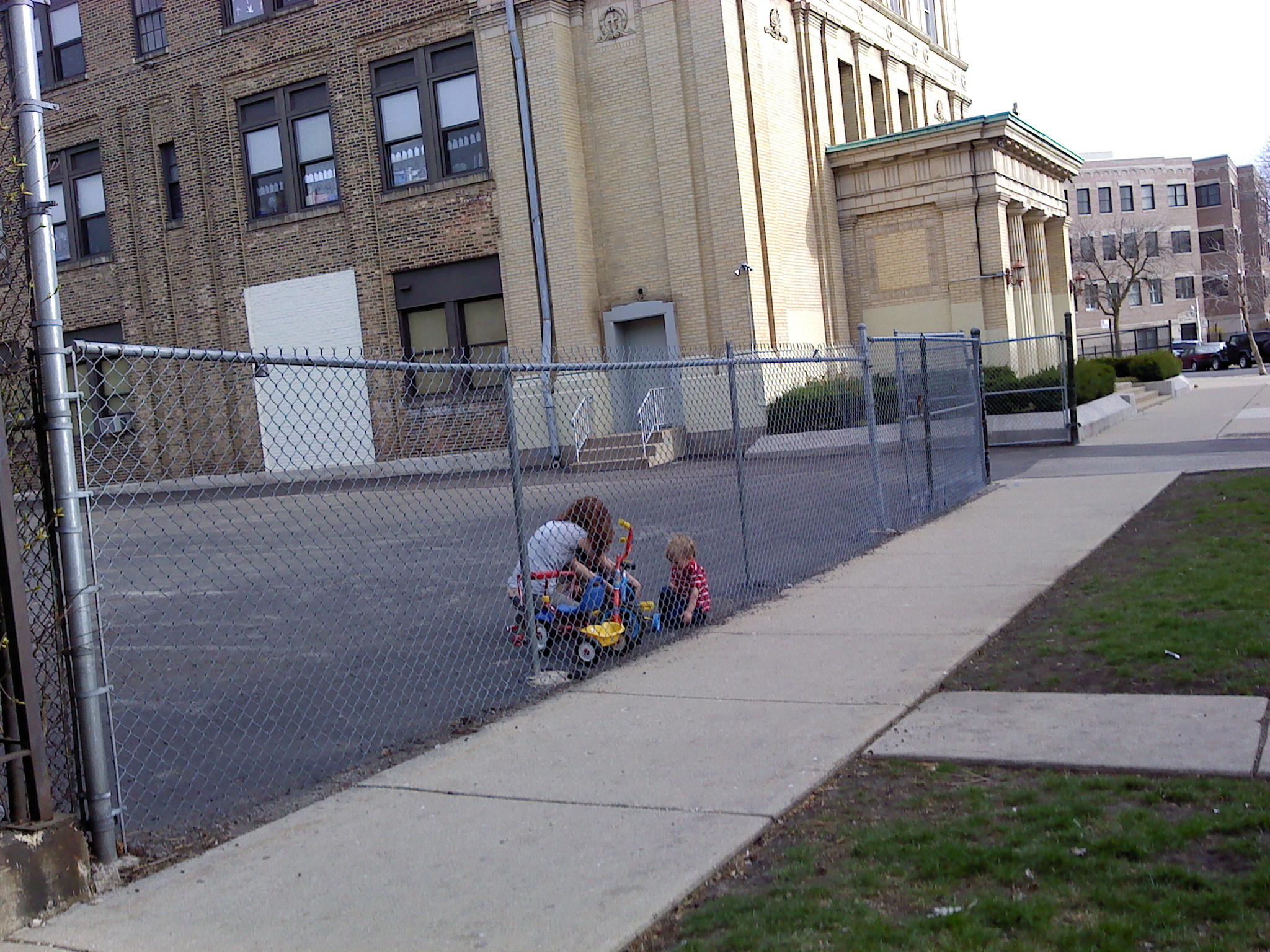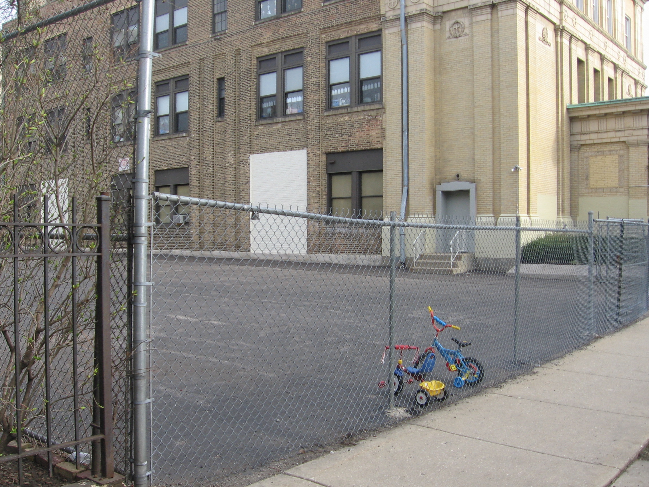 North of the church there were some intervening buildings and then a parking lot, and when I got to this section, I noticed the same fellow kinda pacing around quickly, on the lookout. We were within a ten feet of each other when he whipped around and our glances met. Drolly, I queried if he were looking for someone?