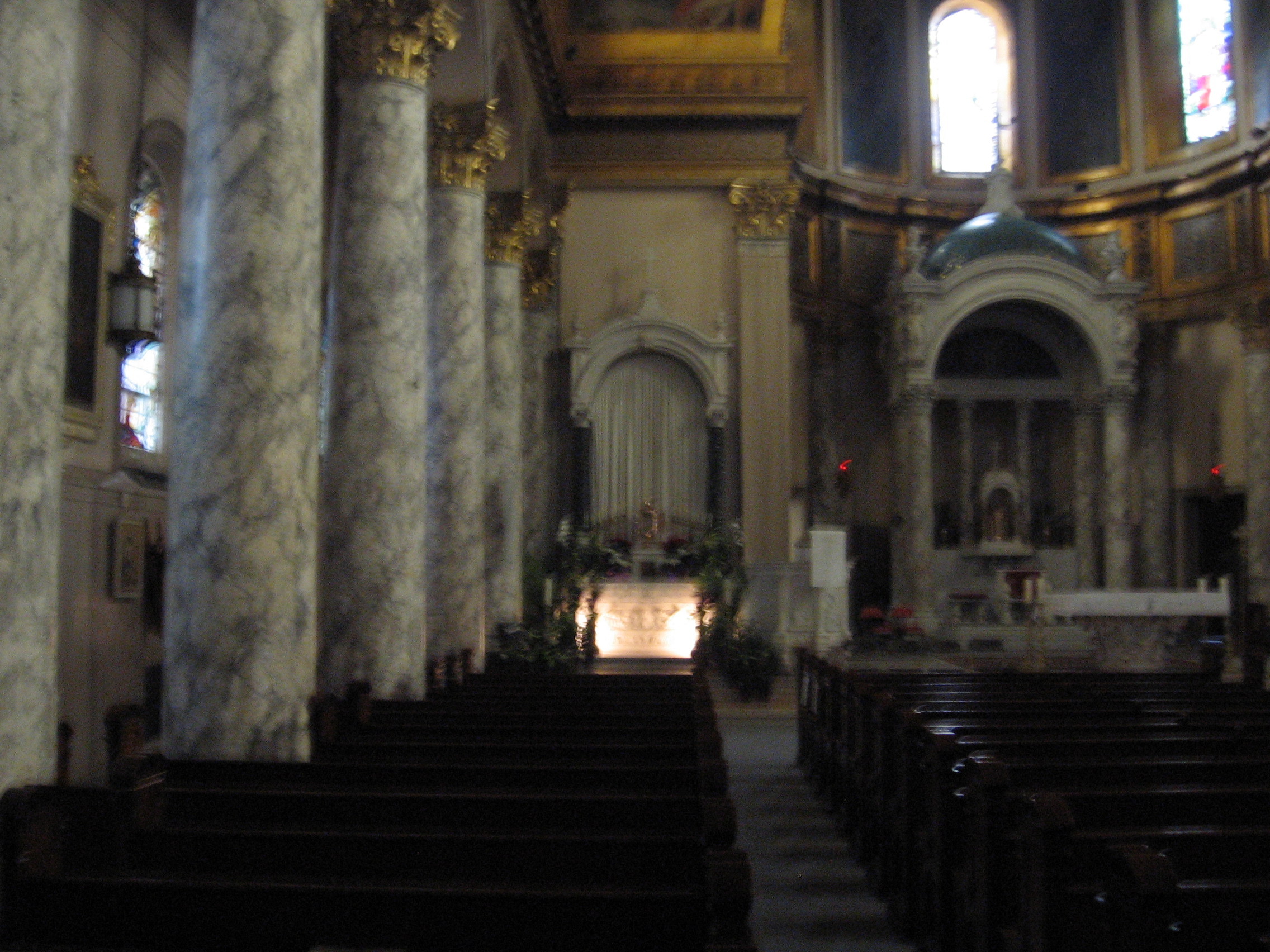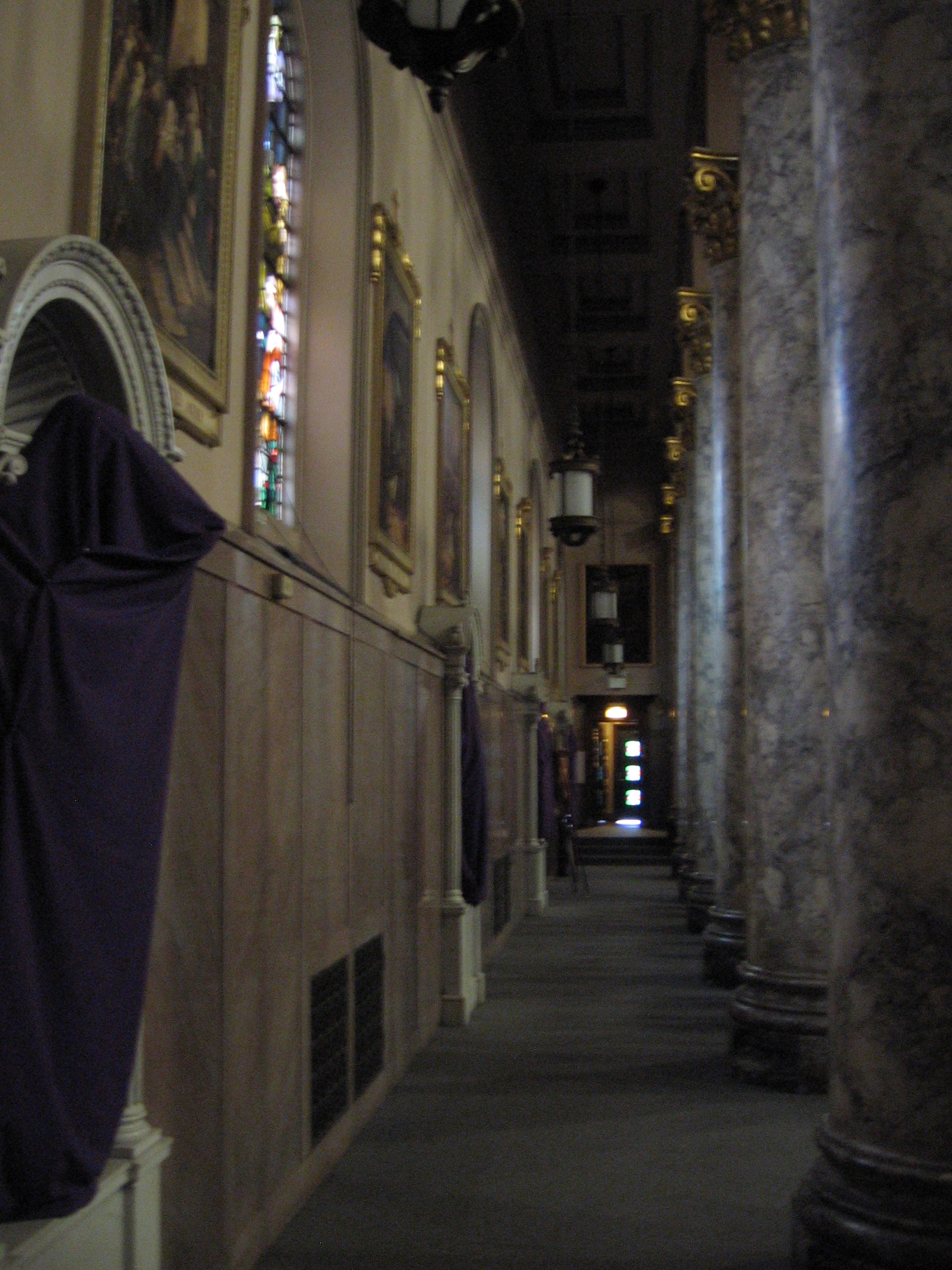 Due to some ritual of Holy Thursday, everything in the church, the fabulous sculpture and ornamentation, had been covered over with thick velvet and white linens. It was like they knew I was coming.