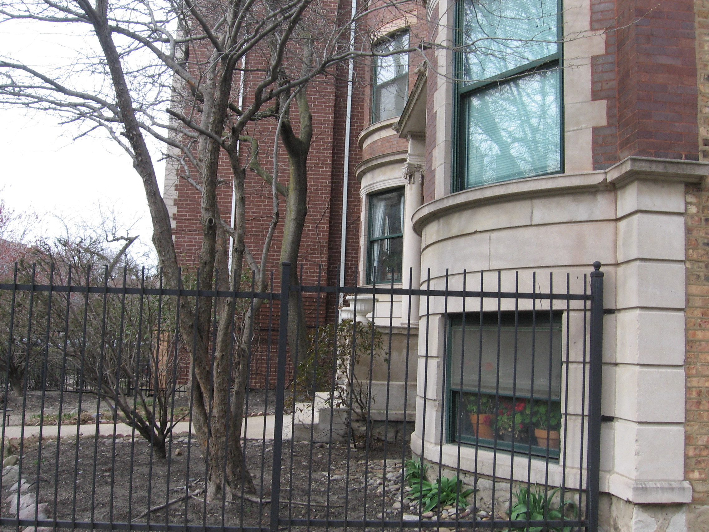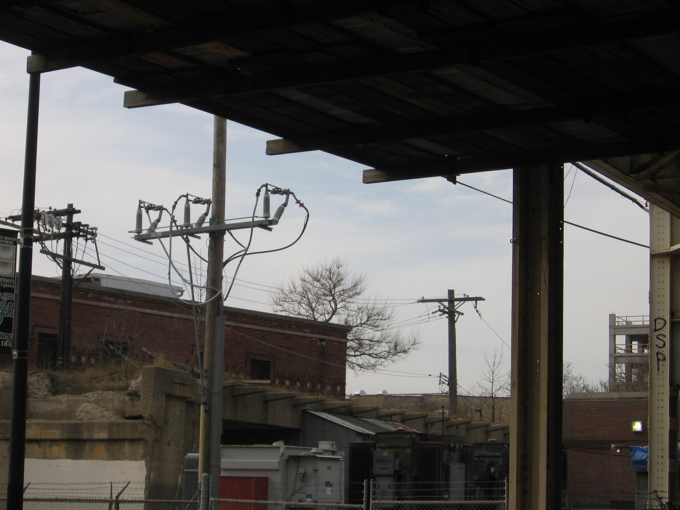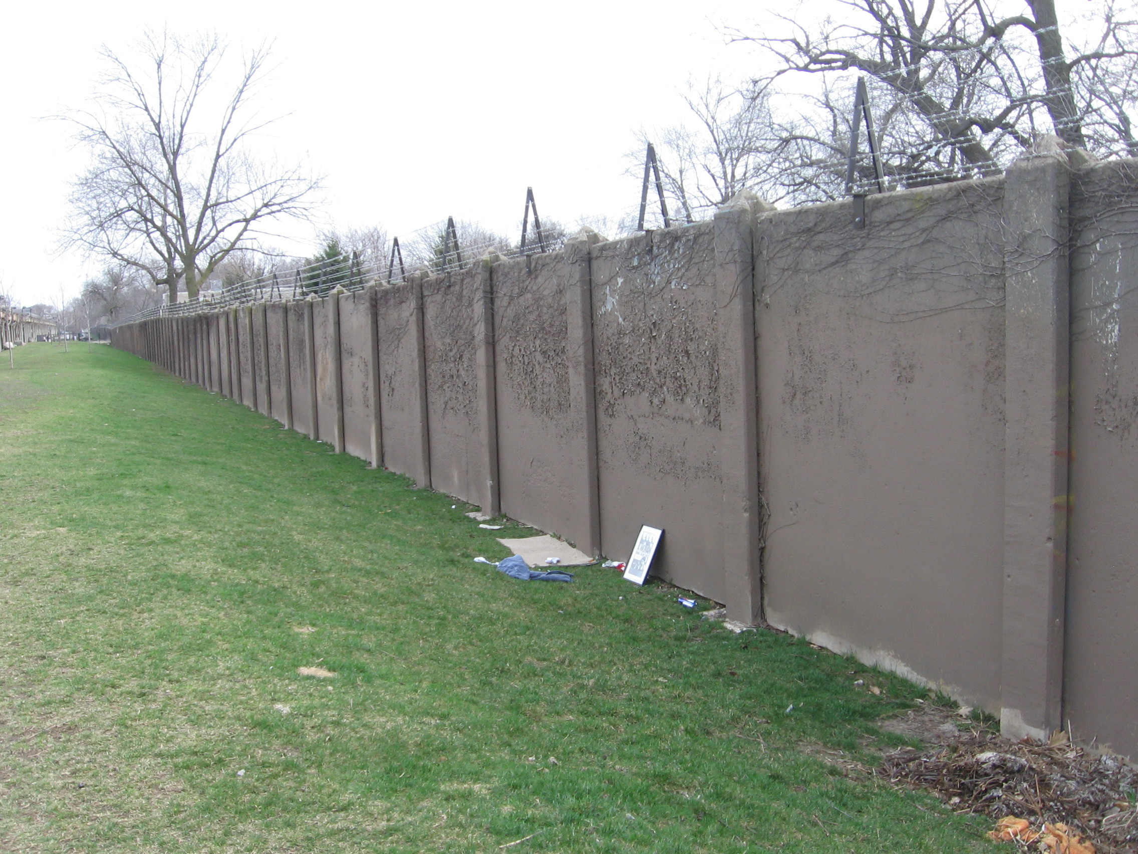 From east of Kenmore to just past the alley-passage on the west which runs directly beneath the tracks; heading south, we have come to a small walking park up the side of a manufactured hill between the Red Line L platform and the barriers which fence the public out of Graceland cemetery.