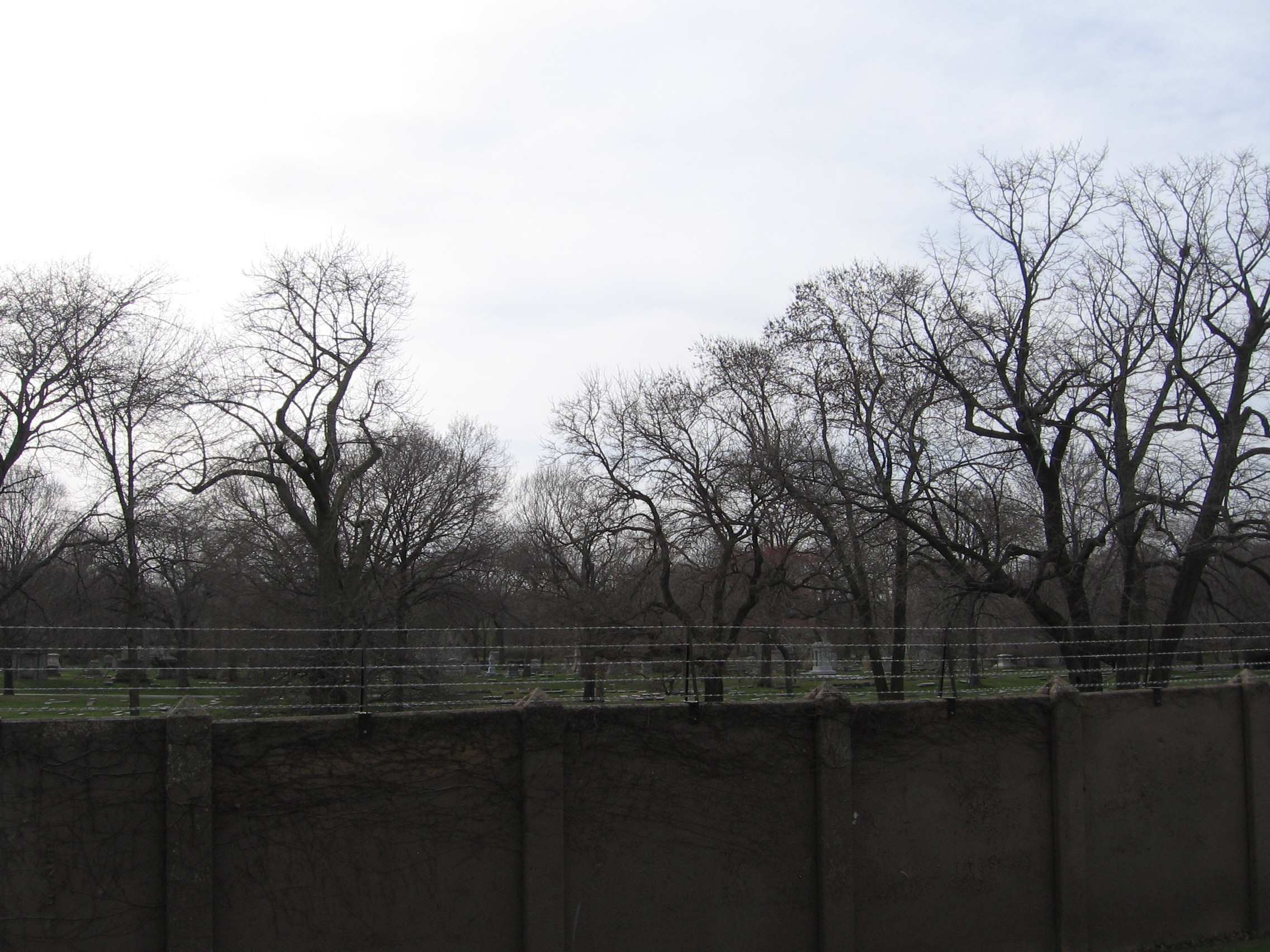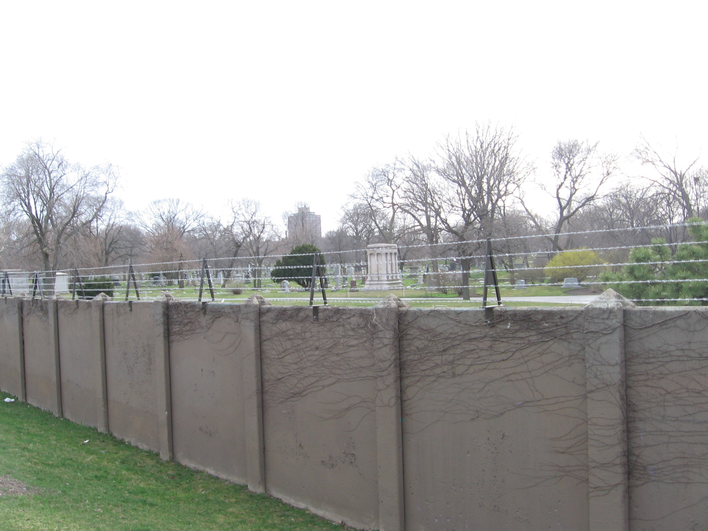 The cemetery's walls are all adorned with barbed wire. Therein, lies Pullman and Pinkerton, politicians and meat packers, priests and musicians, lumber barons and domestic tyrants, reformers, bankers, newspapermen, a gaggle of architects, drunks and children, and any other of the many dead.