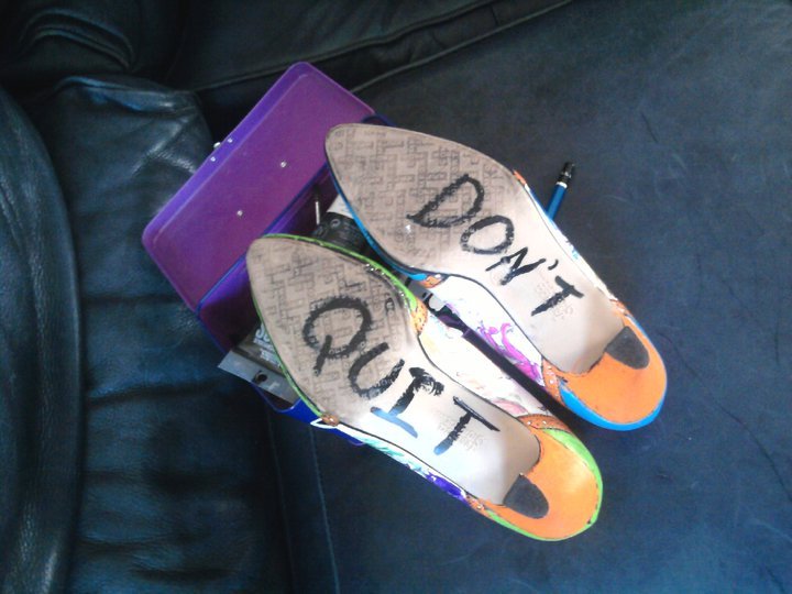 I chose to write 'Don't Quit' on the bottom because there's this magnet on my parent's refrigerator that says that, that I always kind of found reassuring. I saw some graffiti the other day that said "you are beautiful" and I want people to look up and read them, then maybe feel like they should keep going with whatever they are doing, maybe not feel so disillusioned with life. That might be my own delusion of grandeur but oh well. I'm about to take them out for a spin, I'll post more pictures and let you know how it goes and where they make their final rest.