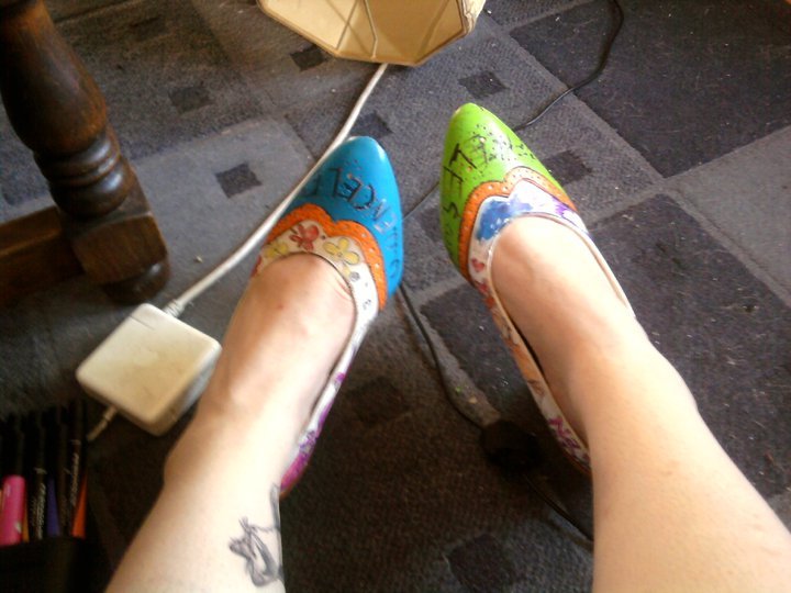 Theses shoes were once my mother's, then they were my aunts, then last year around this time they became mine. They've been around somewhere around ten years and I only wore them once. So I chose to paint them and marker them and give them one last go around the city.