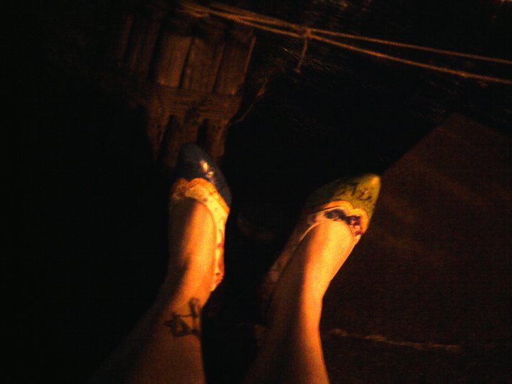 After a few hours there I met my boyfriend again and we made up properly. While he closed up shop I made my shoes ready for their send off. I wanted to put them up over a place I considered home. We road our bikes to his apartment and soon to be our apartment. I didn't think I could throw them high enough so he tried his hand first.