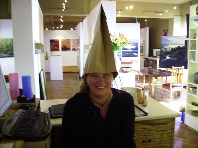 I did manage to start a conversation with the attendant at the art gallery, Melanie. She was a hoot and very nice. Here's a photo of her: