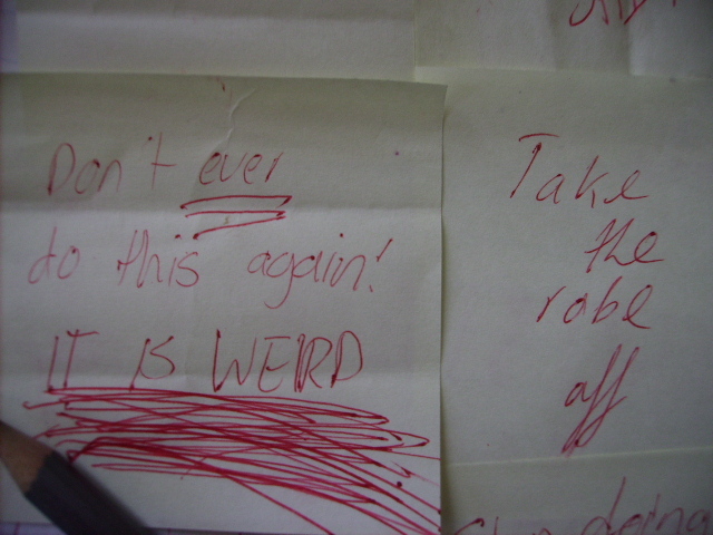 It was the dressing gown that meant I took everything too far. I decided to walk aroung the main street in a dressing gown wearing a suggestion box aroun my neck: