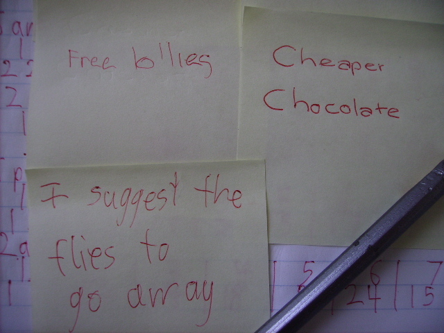 She put a suggestion in the box but I didn't look at it until about 24 hours later. This one is my favourite: