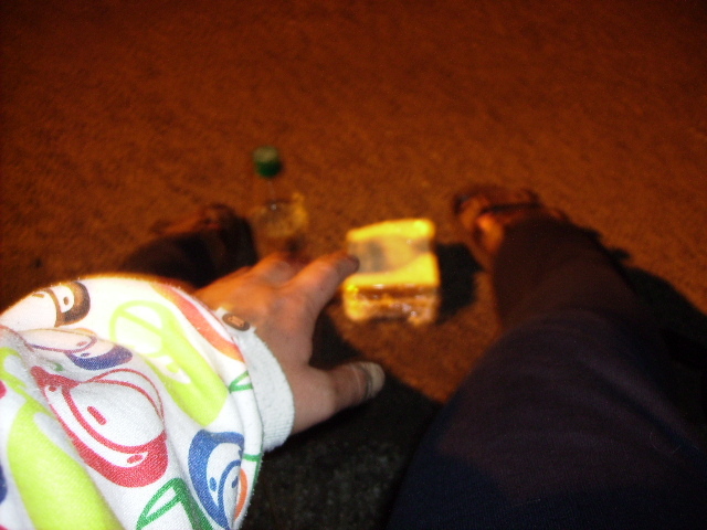 I packed a drink, a camera, a reading light (didn't have a working torch), two sandwiches, sandshoes (sneakers), socks. I was wearing my signature rainbow monkey jacket and sandals (big mistake) when I left.