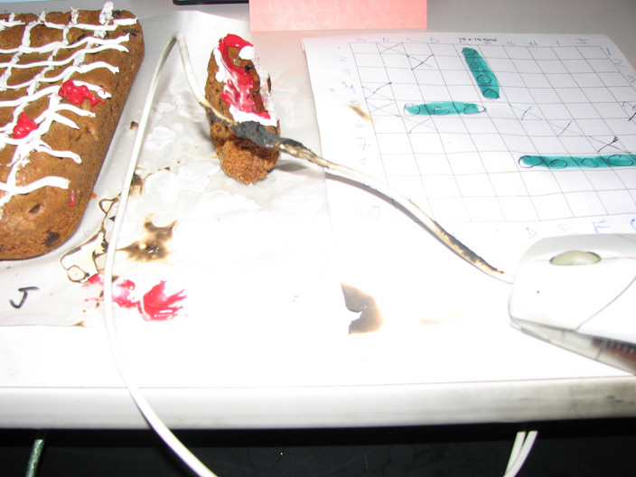 that was tough, you had managed disable my communication systems. which set off my smoke alarms. my mouse has horrendous 3rd degree burns, though it does work perfectly. while my keyboards wounds seem superficial, it has become a vegetable and will never lead a normal life again. i think i got a photo of that fiasco, although i was more concerned about my desk being on fire.