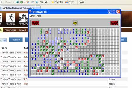 That means I wasn't allowed to mark off where any mines were. This was harder than it looked. I was playing this while Lowteck had his Keyboard in flames (how on earth did that happen?).