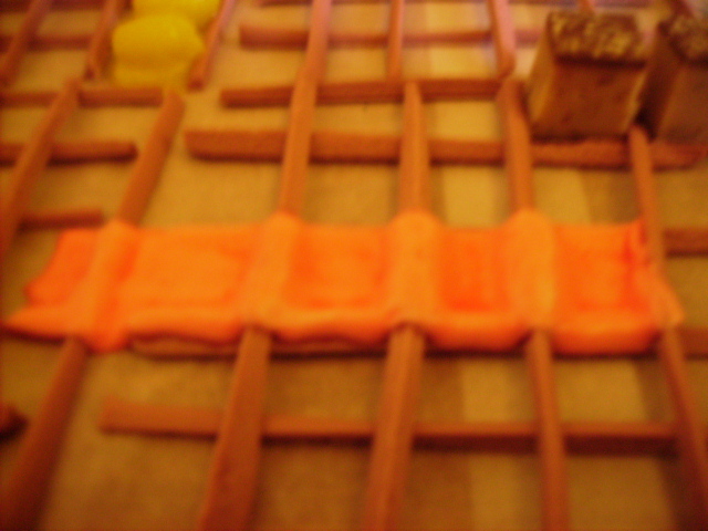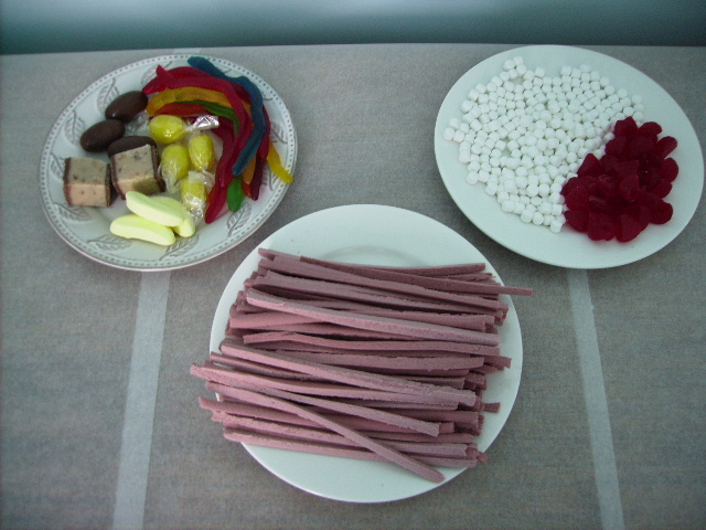 A couple of days before the game, I set up my playing area. In order to create a grid I had to chop over 20 Big Bosses into quarters lengthways (I would have used liqcorish but I hate the stuff):