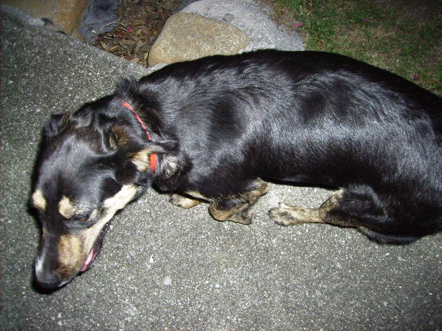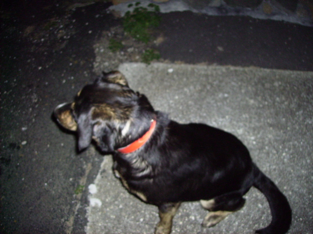 Fergie! What was she doing out so late at night (yes, I see the hypocrisy)! Fergie belongs to my little brother. He's had her for about a year now. She's always escaping and roaming around. I took her home and restarted my walk.