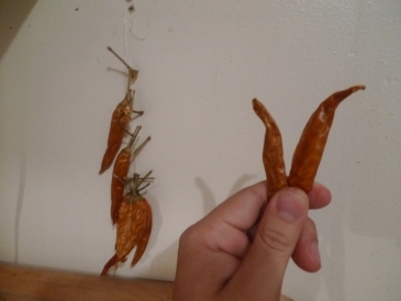 For the mushrooms, I needed something more powerful. I took some dried kanthari chilies that I bought from a dude who looked like he'd stumbled out of a future disco-ashram at the north pole. His mustache was strong and his mellifluous voice spoke only dense trinidadian patios. When I asked him how spicy the chilies were, he offered me a bite. I can assure you they taste like expansive and transcendent fruitfire. Here are before-harvest and after-drying pics: