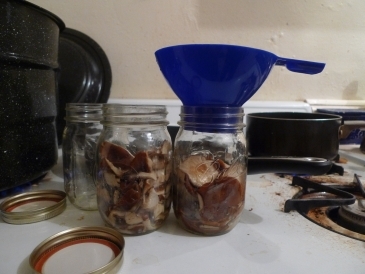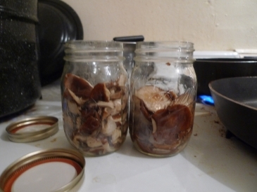 I had to prepare both the mushrooms and the cucumbers for their journey outside the bounds of regular time. Here is the mushroom prep: