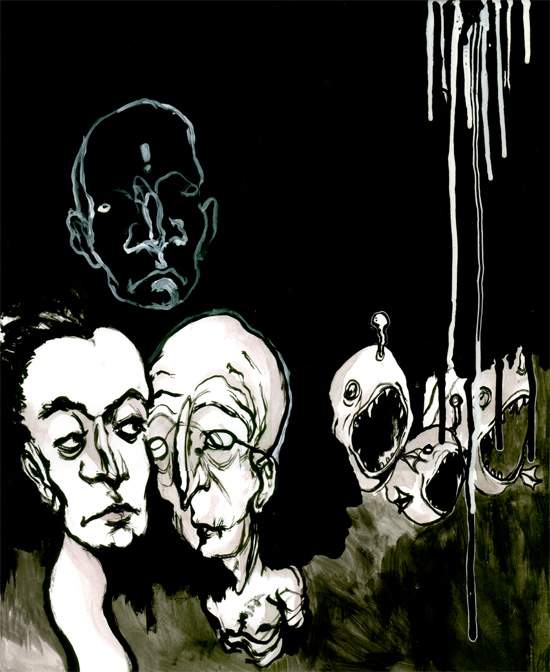 So here's my drawing: it was originally meant to be the left panel of a triptych. It is by no means a Michelangelo, a Caravaggio, or even a Magritte. It's just a drawing and is meant to be just a drawing. It's not a philosophical representation of the human condition; it's a return to art for art's sake. Art meant to just be a visual experience.