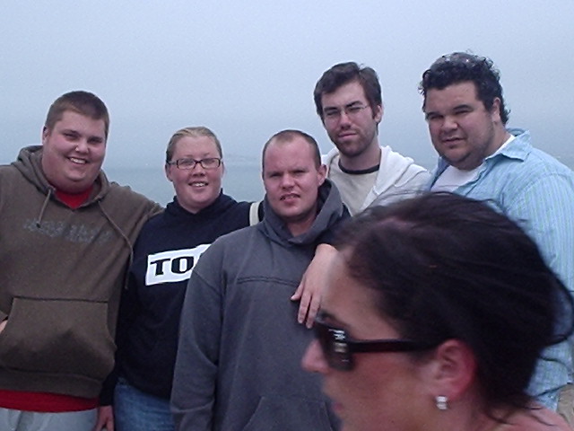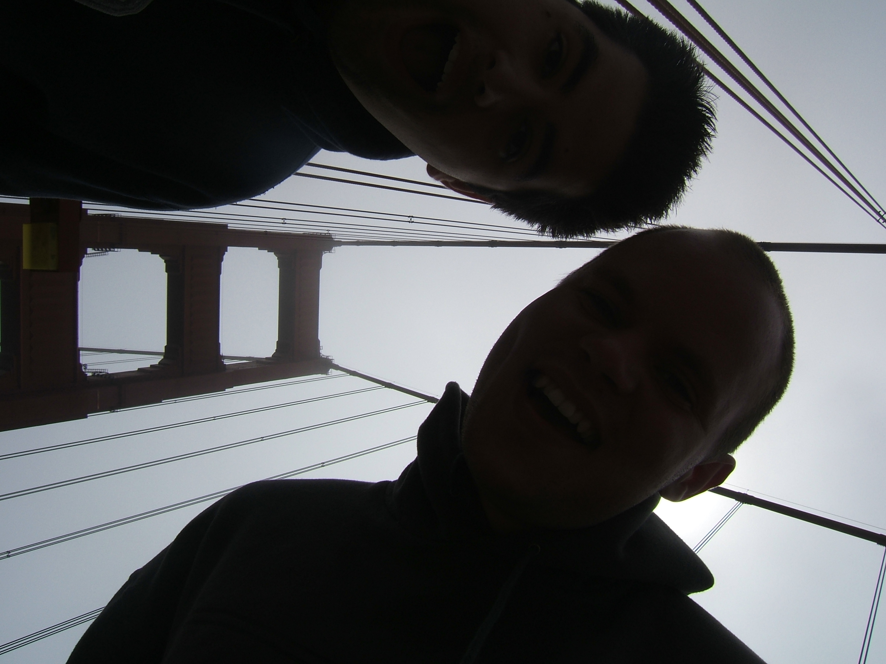 so this was steven parea's idea and it turns out one of the CABC is a Bart Geopsycho member and so we set out to walk the golden gate...we were supposed to meet at the niccolettes house but kussi and stevan were running late...jesus told me to go...so we did. paul k the hotness she is, niccolette the sweet treasure and crzy bones piled into my piece o sweet and went across the golden gate bridge...it was a nice foggy day and we thought that the tourists would be in low supply...