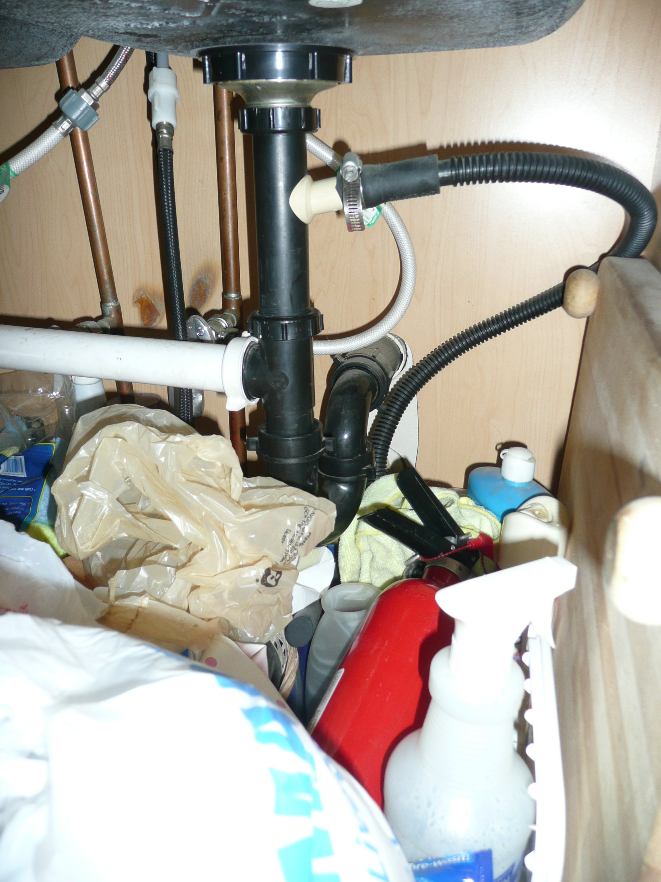 Under the sink...