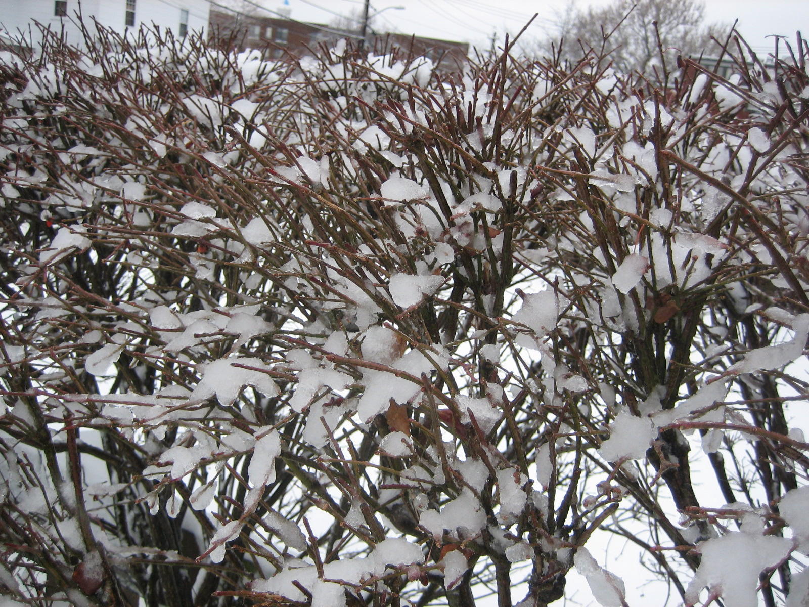 At about the halfway point, my snowshoes started to lose structural integrity, but I was able to jury-rig a solution by changing the way that they were tied onto my boots. Unfortunately, the sleet was turning to rain, and the snow started turning into slush. You will not be surprised to hear that snowshoes are very ineffective on slush. Luckily, my office wasn't too much further. Total transit time was about 2.5 hours.