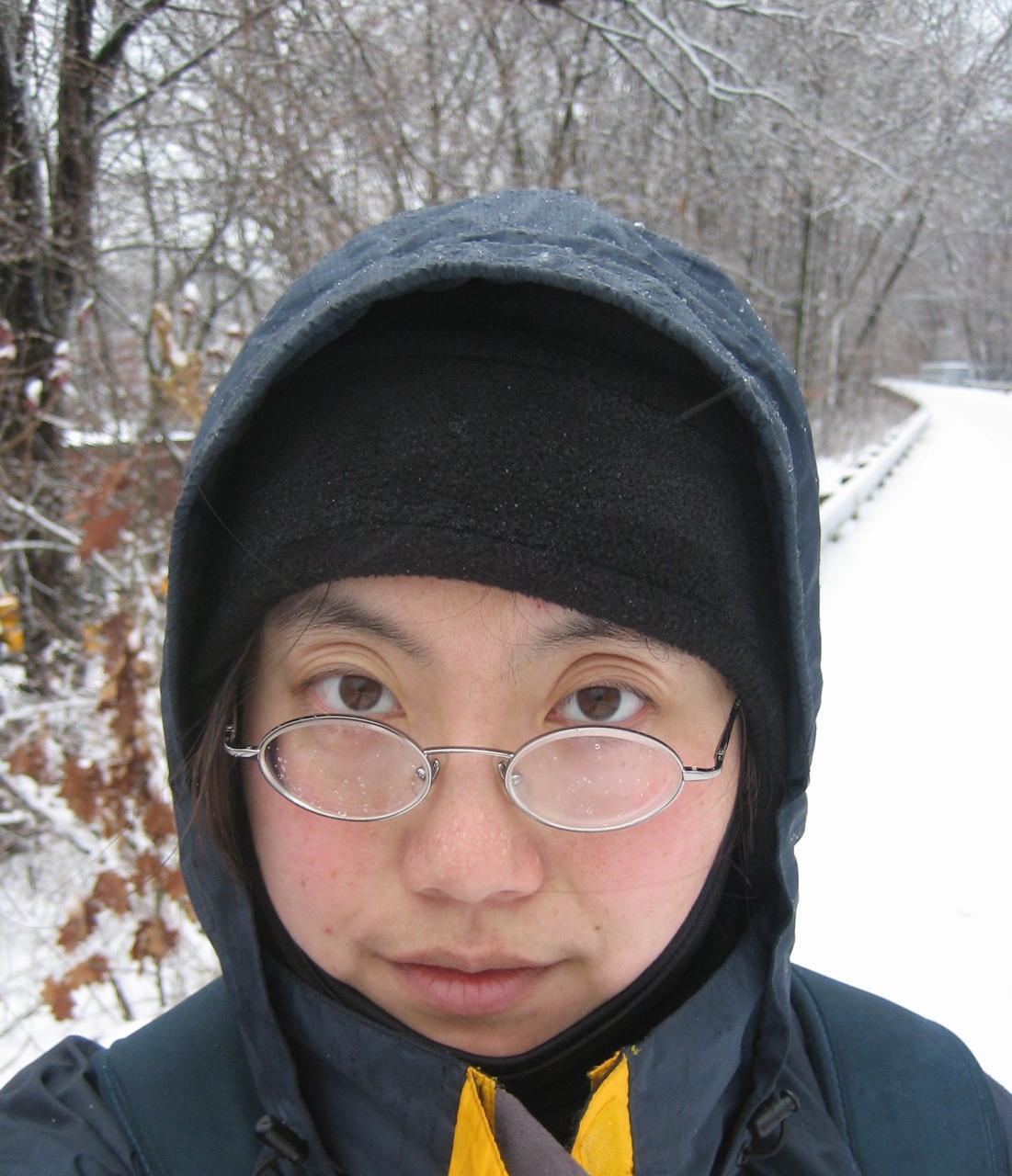 The first half of the trek was fairly uneventful. I've never snowshoed before, so it took a bit of getting used to walking with my knees slightly bend and feet far apart. The ice on the trees was pretty, but I mostly had to look at my feet the whole time to avoid tripping. It was peaceful, with the sound of the sleet on my hood, and very few other people out and about. Unlike normal walking, each step felt like a deliberate action. Step followed step, and it felt like I was part of the passage of time, like sand falling through an hourglass.