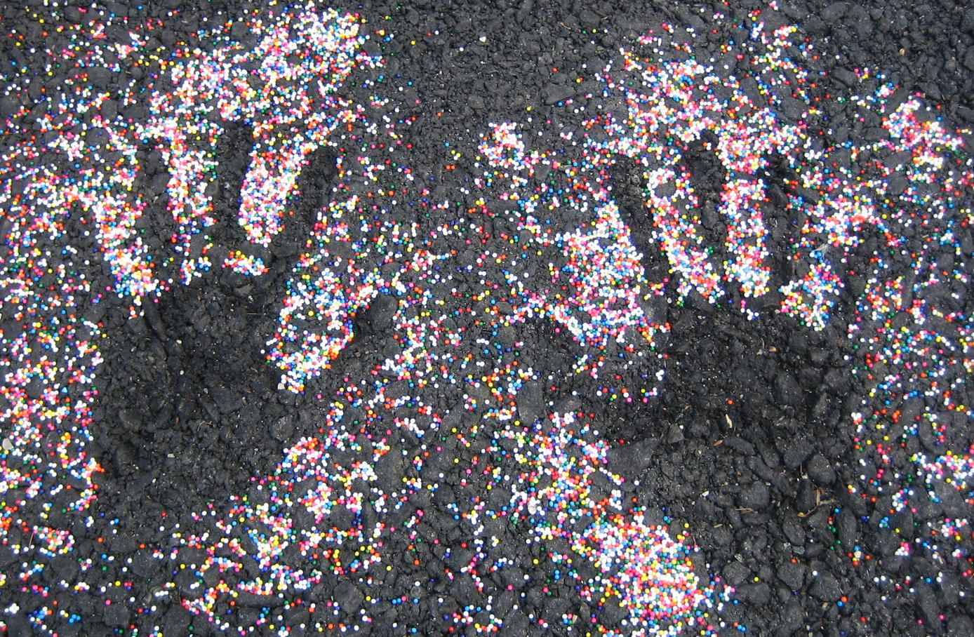 The anagram of "men pouring badly" that I picked was "a problem undying", since art is one of humanity's perpetual concerns. I made this photo in a pseudo cave-painting style, using sugar sprinkles, to go with the University of Aesthematics group and imply continuity with some of the earliest known examples of human art.