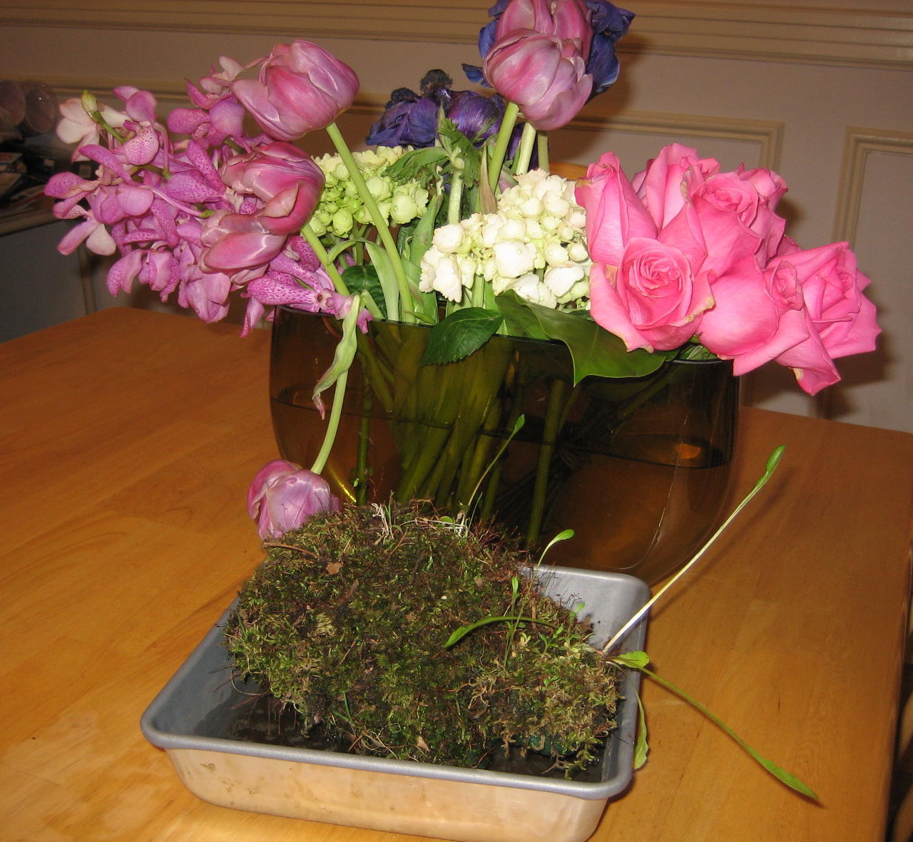 You can see how long some of the non-moss shoots are getting here. They eventually wilted, but the moss part is still doing ok.