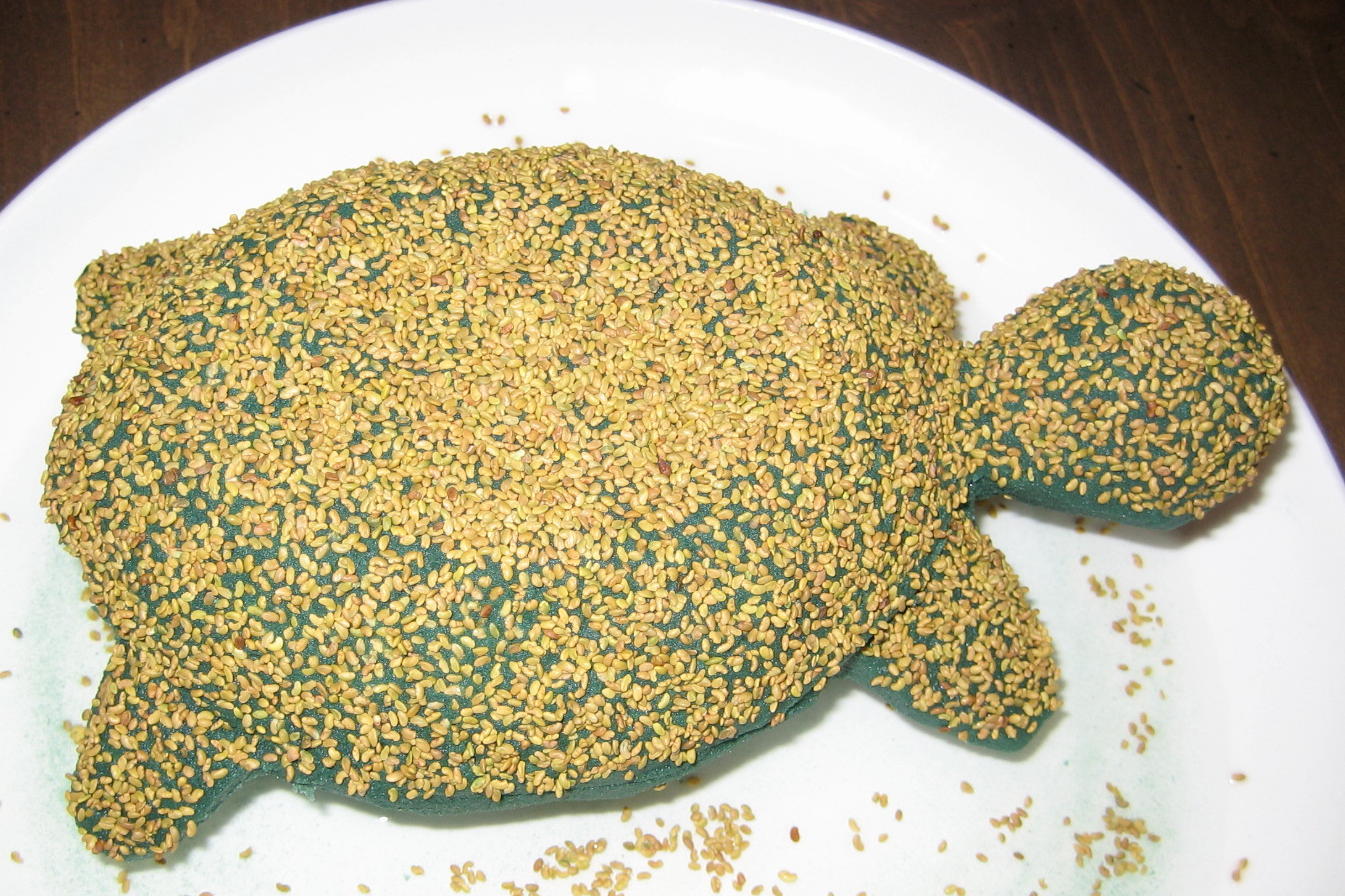 Myrtle the moss turtle likes flowers