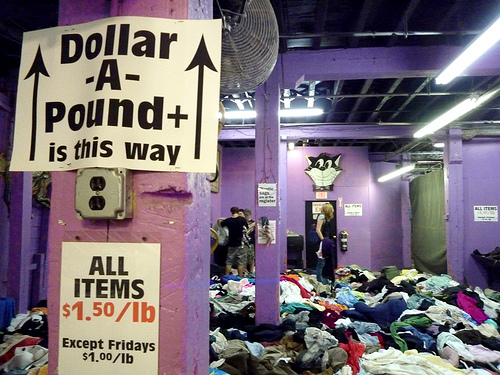 There's a used clothing store around here that I'd been to once before, twenty two years ago. Back then, I went with some friends to buy some suit jackets for the guys, so we could dress up for a Halloween party where the theme was vaguely Prohibition Era/art deco/hot chocolate. This seemed like a good place to go hunt for treasure, but I didn't even find anything that I wanted to try on, let alone buy.