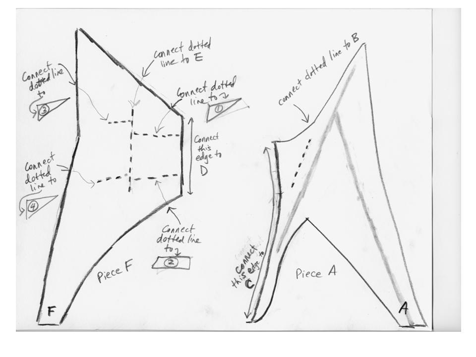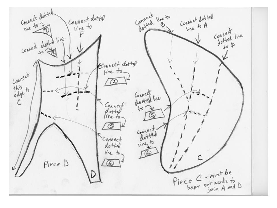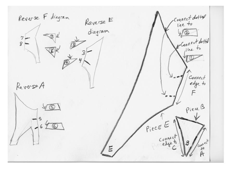 I returned to the Media Lab Building with a sketch pad and drew the components of the sculpture for later reproduction. Then, I took scissors, paper, and tape and eyeballed the art to put together a rough prototype in 3D to go along with the sketches. Comparing the prototype scale model with the Great Sail, it looks like the build-your-own sail system produces decent reproductions.