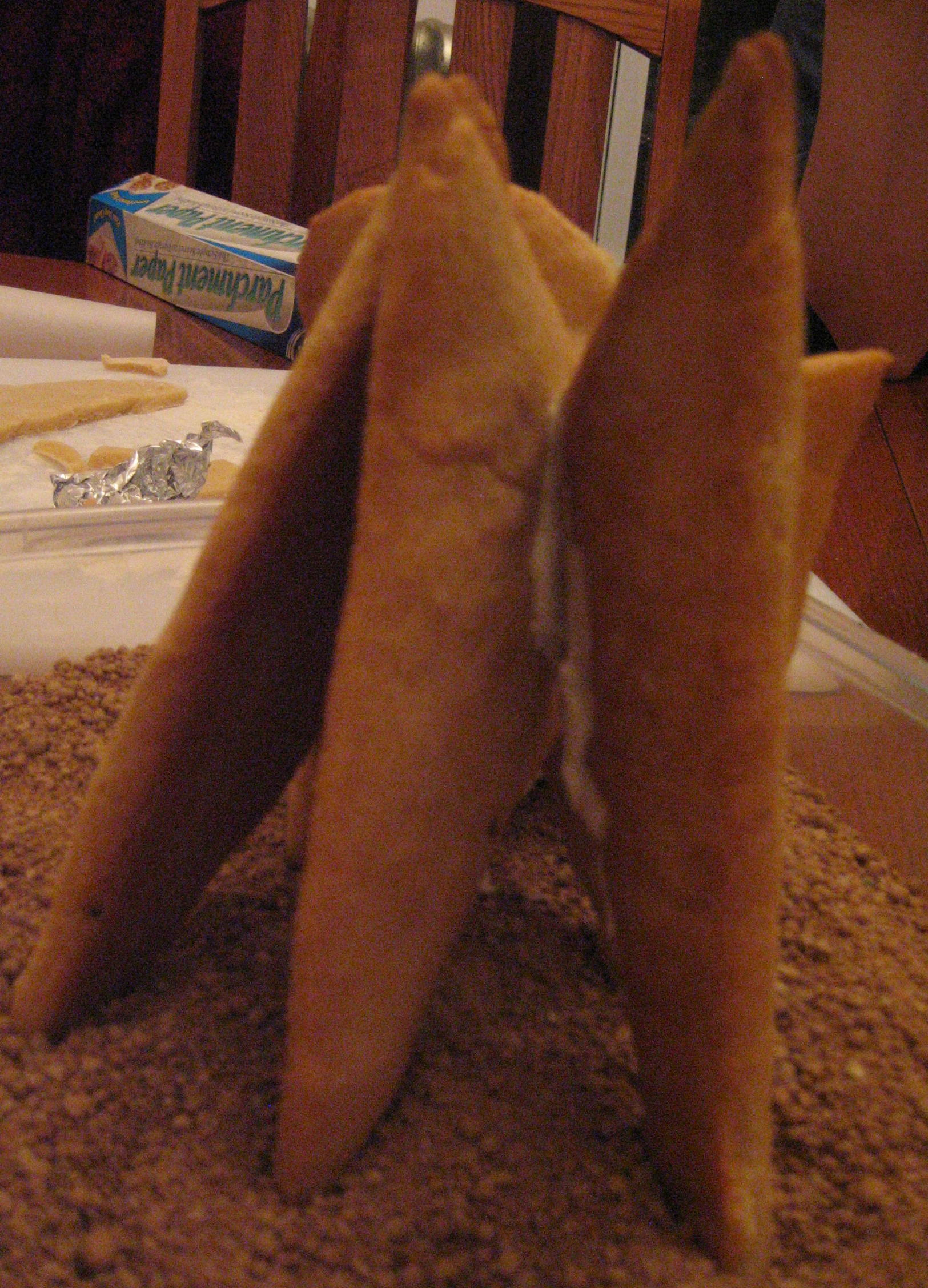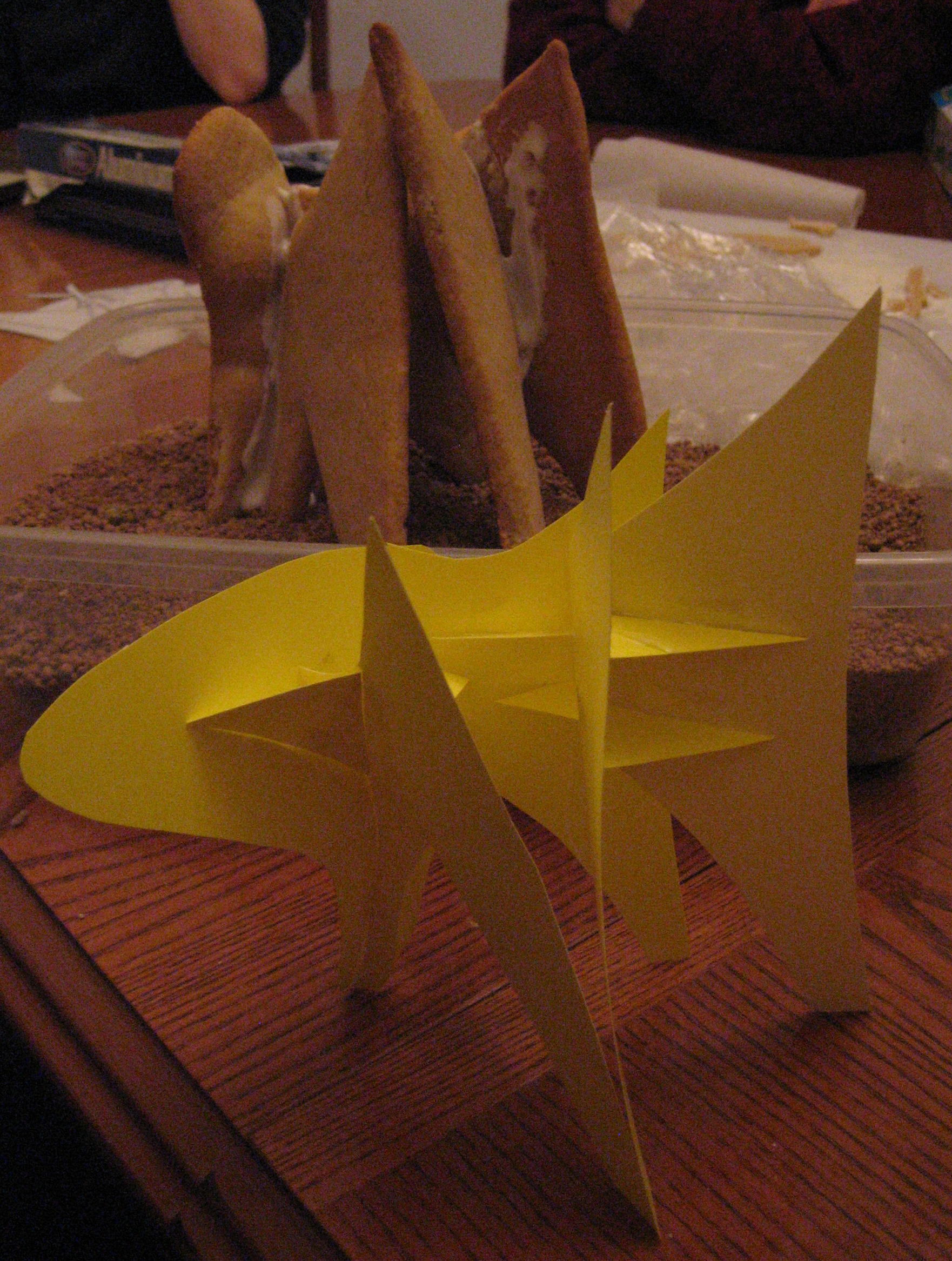 Then we tried making a model with sugar cookie dough. Turns out that icing is not a good enough adhesive for the purpose, but a tray of sand was enough to prop up the pieces into a facsimile sail. This model is many orders of magnitude more tasty than the original.